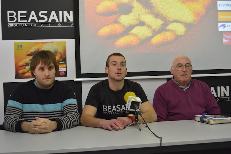 Jaialdiaren aurkezpenean izan dira Beasaingo Murumendi pilota eskolako Ibon Insauti, Asegarce enpresako Manu Zubillaga eta Beasaingo Udaleko Koldo Agirre.