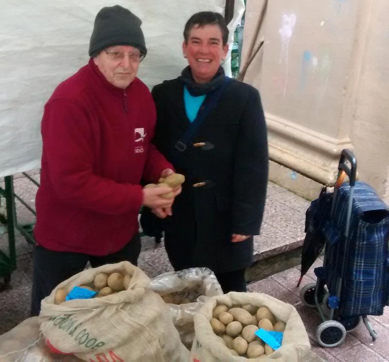 Hirugogei urte daramatza Jabier Lacalle aguraindarrak feriaz feria, eta hamaika kontu ditu gogoan. Lehen askoz patata gehiago ereiten zela dio; ohikoa omen zen bezero bakarrak 200 eta 500 kilo artean eskatzea. Orain, ordea, salbuespenak dira horrelakoak. Aurten, kilo gutxi batzuk besterik ez ditu saldu: «etxeko kontsumorako, baratze txikietakoak izaten baitira erosle gehienak». Eta pazientzia handiz, beharrezko informazioa emateko prest da. Kezka nagusia eguraldia du orain: «lurrak beroa behar du eta ez hain bustia» zioen.