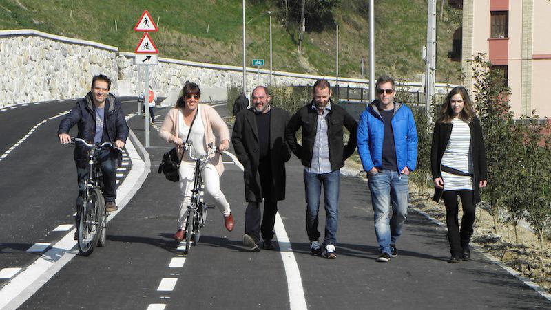 Foru, udal eta enpresa agintariak Itsasondoko bidegorri berrian, gaur. / Aimar Maiz