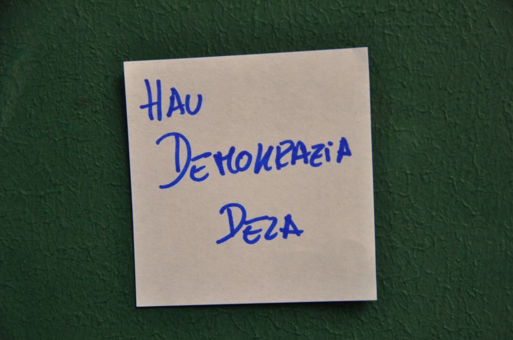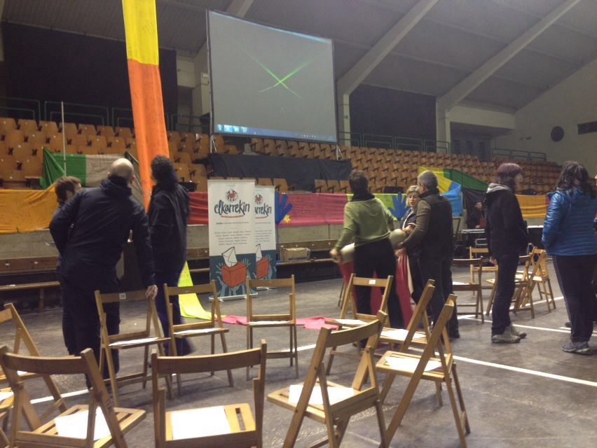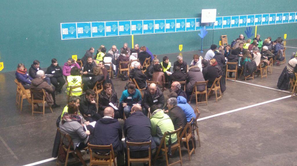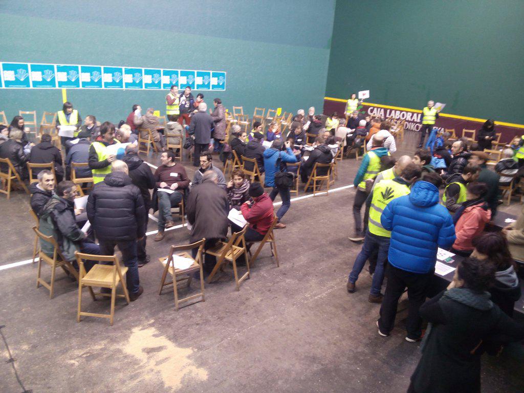 Galdera Batzordeko kideak aurkeztu genituen Zumarragan otsailaren 13an egindako aurkezpenean. Izaera, adin eta ezaugarri anitzetako 27 kidek osatzen dute galdera erabakitzeaz arduratuko den batzordea. Euren lana oinarritzeko, bideari lehen bultzada emateko, elkarrizketa irekia egin genuen otsailaren 27an Idiazabalen. Bertan bildutako 200 lagunek eztabaida irekia egin zuten taldeka, eta talde bakotzean akta jaso zuten, parte- hartzaileek esandakoaren mamia laburbiltzeko. Egun horretan jasotako 16 aktak Galdera Batzordeak eskuratu ditu eta kontuan hartuko dute ekainean egingo den galdera adosteko. Apirilaren 9an jakinaraziko dugu zein izango den galdera. Argi dugu, dena den, galdera eta erantzuna baino askoz aberasgarriagoa dela Idiazabalen eta Galdera Batzordearen barruan izandako eta izango diren elkarrizketak. Elkarrekin era irekian hitz egitea, elkarbanatzea, adostea; elkarrekin egitea bidea.
