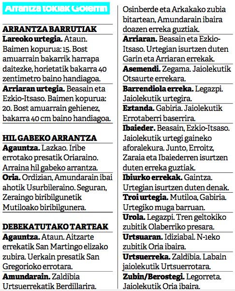 Ibaietan eta erreketan apirilaren 3tik uztailaren 31ra egin ahalko da arrantza. Eskualdean Lareo eta Arriaran urtegiek barruti izaten segitzen dute. Asteartea, jai