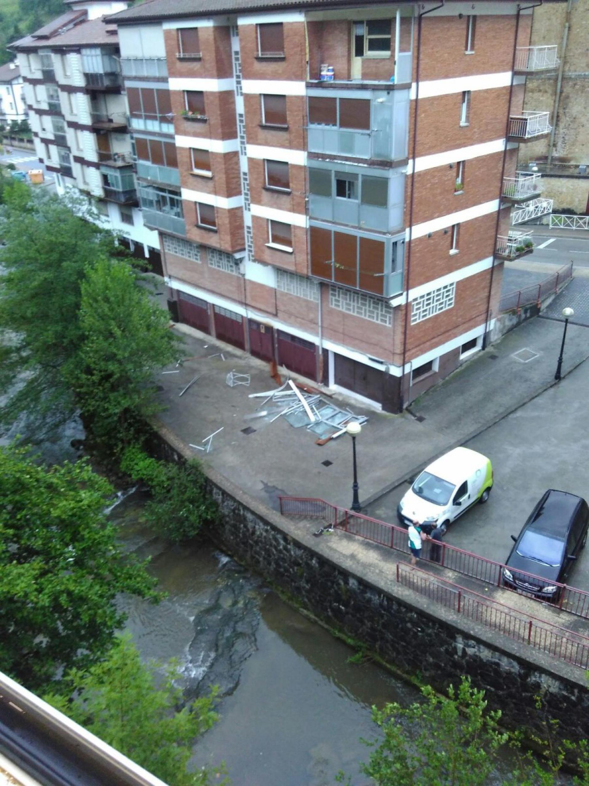 Zegaman, berriz, Oria ibaiaren ondoan Elizalde kalearen inguruan dagoen etxebizitza blokeko azkeneko pisuko balkoi bateko itxitura kalera bota du haizeak, baita zuhaitz bat ere errekara frontoi parean.