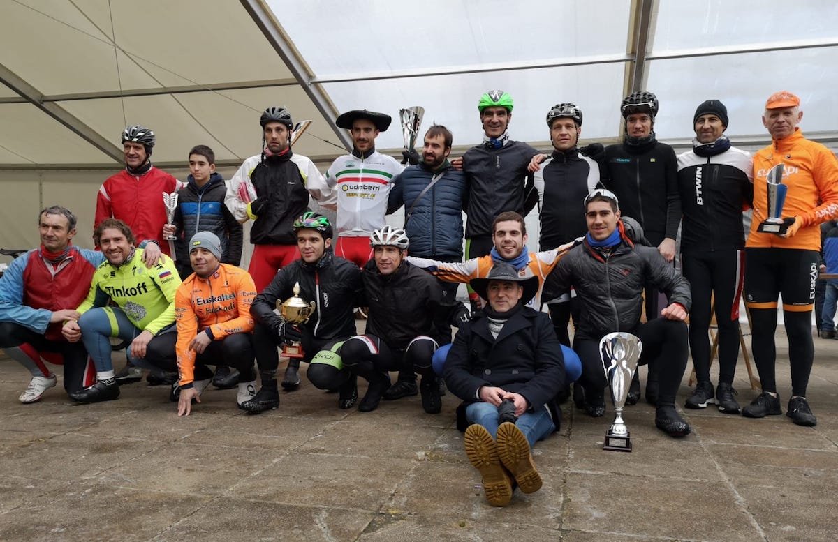 Lasterketa amaitu ostean taldeko argazkia atera dute txirrindulariek Josu Urrestarazuk irabazi du Idiazabalgo 31. San Blas txirrindulari lasterketa. Bigarren postua Ibai Urkiak lortu du, eta hirugarrena, azkenik, Arkaitz Arceluzek. Lehenengo eta seigarren maila arteko haurrek ere hartu dute parte. Horien artean garaileak Izar Etxezarreta, Xeber Murua, Sua Murua, Unai Aranburu, Elaia Alberdi eta Ugutz Lasa izan dira.