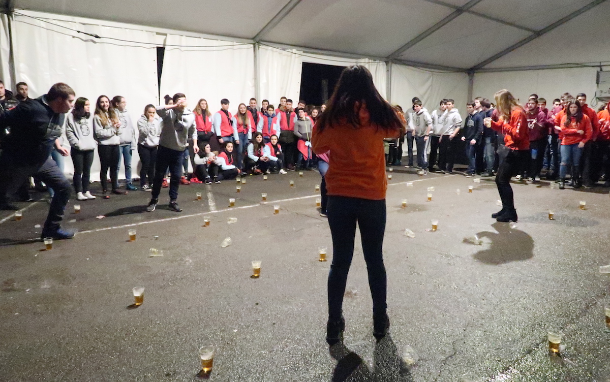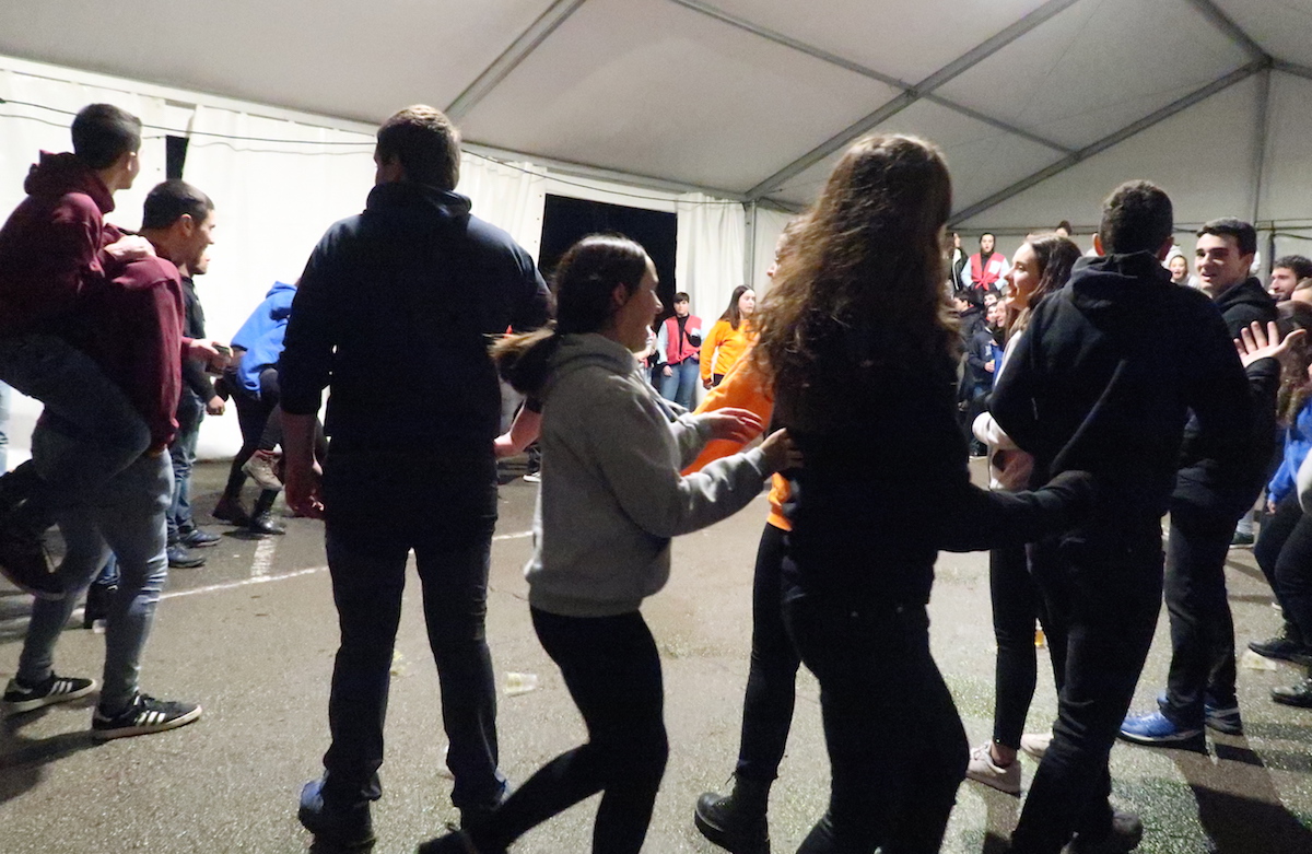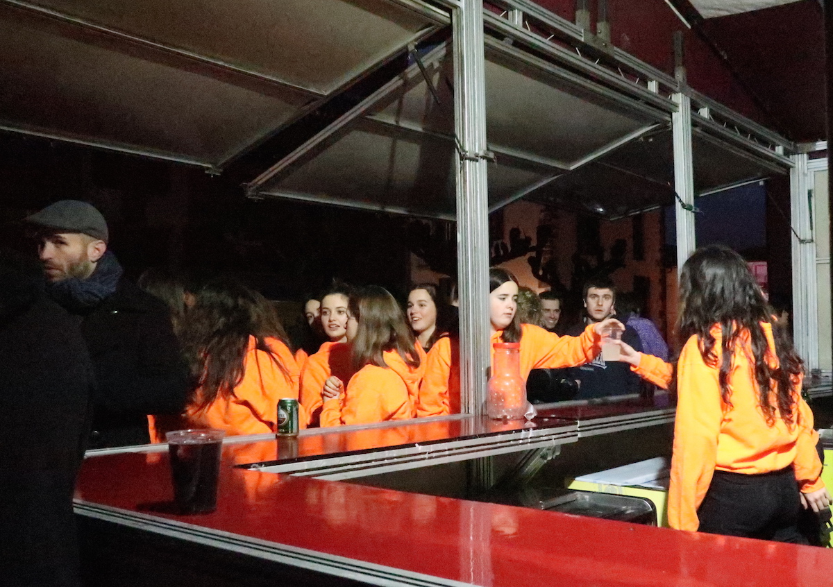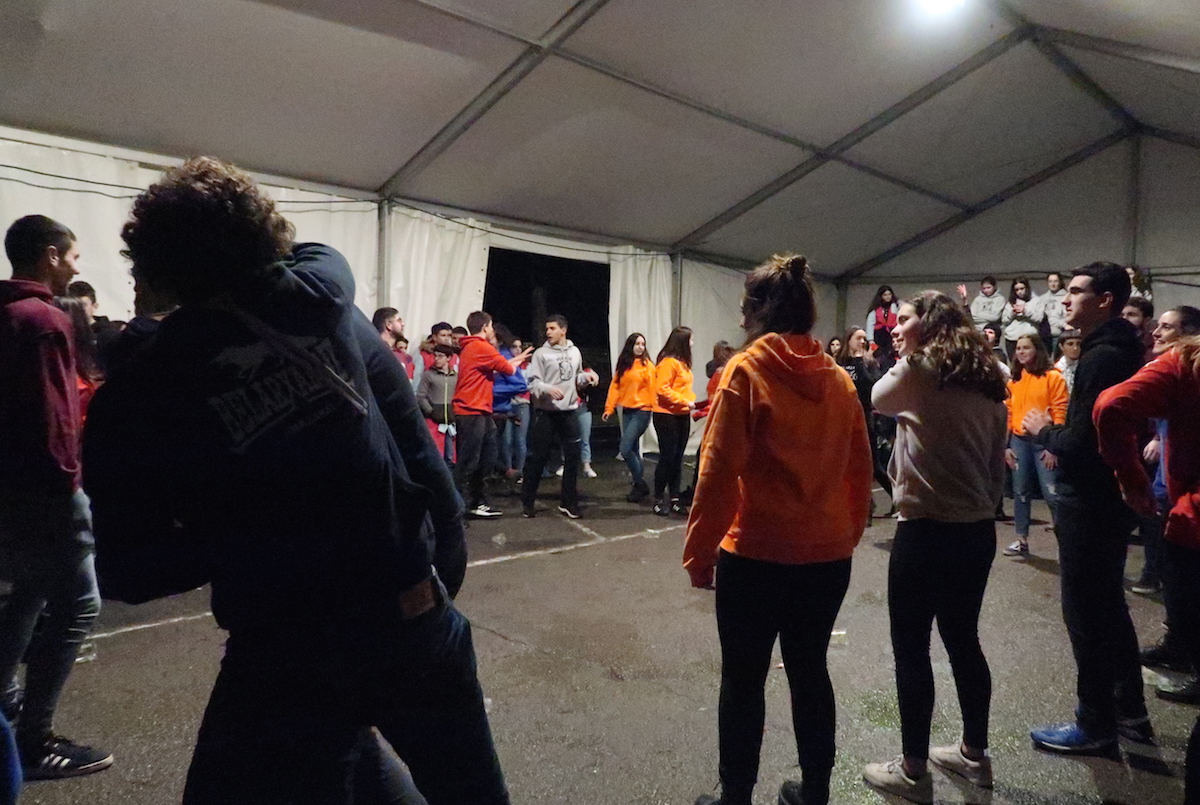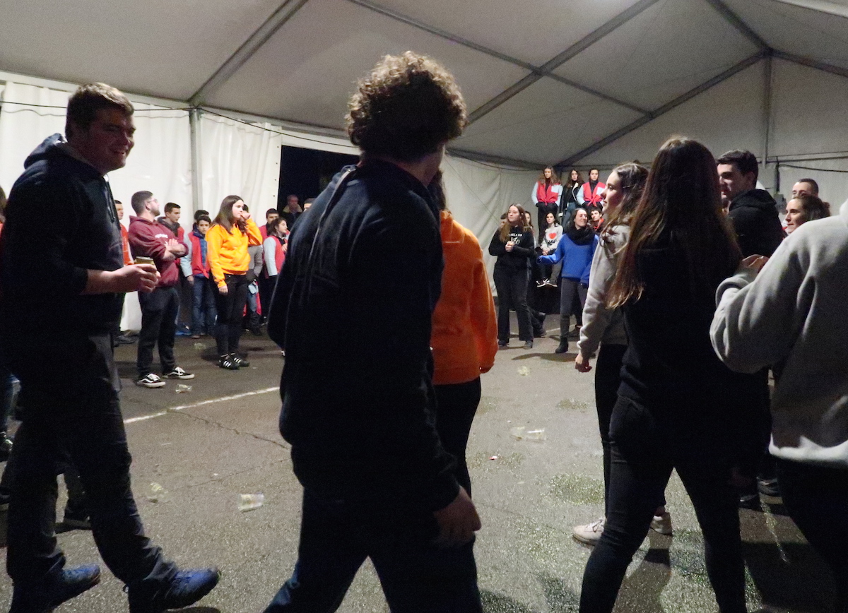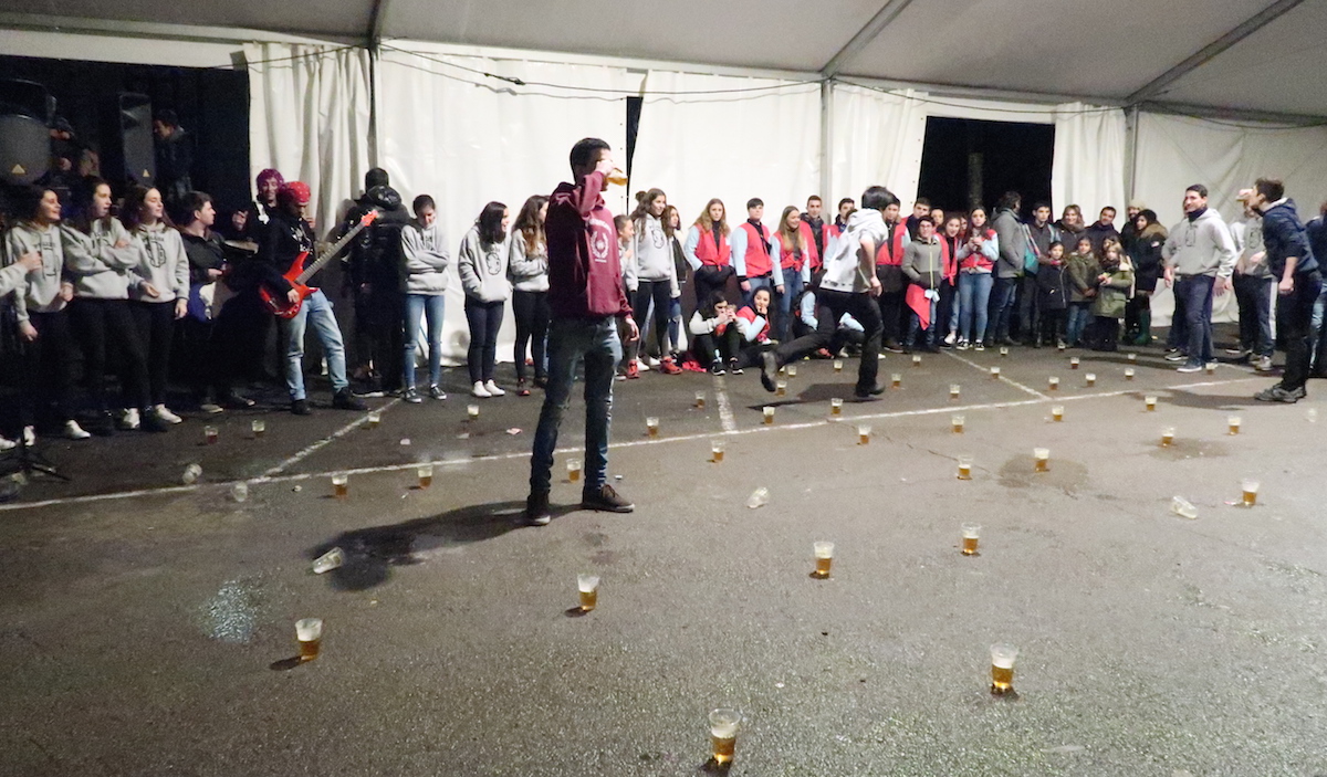 Elektrotxarangako kideak txosna inguruan musika jotzen hasi bezain laster bildu dira herriko kuadrillak bertara, eta 19:00etan hasi dituzte elkarren arteko jokoak. Euria, kazkabarra eta elurra ez dira gai izan idiazabaldarrei festarako gogoa kentzeko.