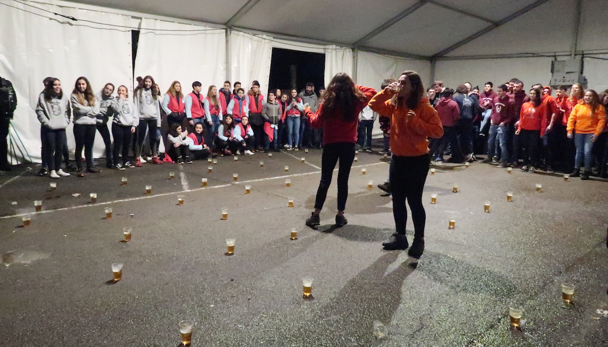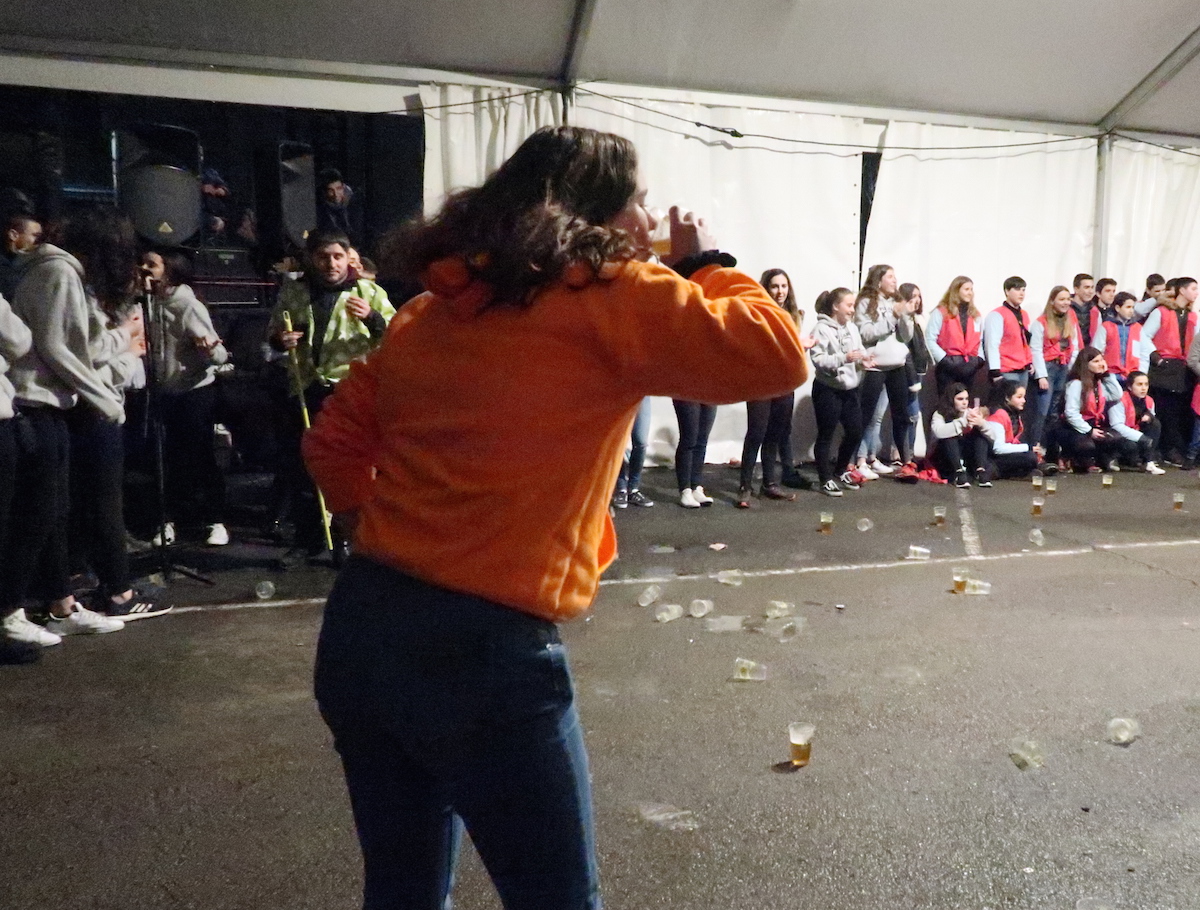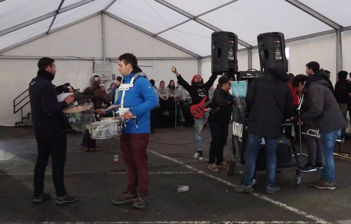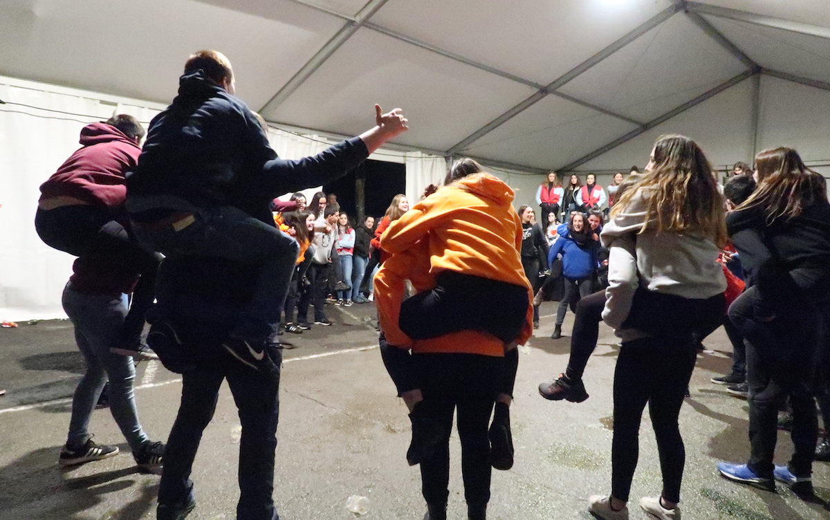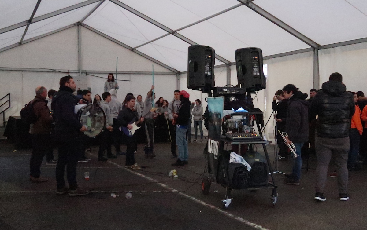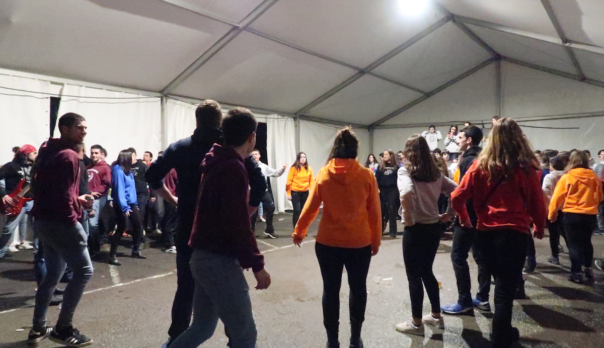 Elektrotxarangako kideak txosna inguruan musika jotzen hasi bezain laster bildu dira herriko kuadrillak bertara, eta 19:00etan hasi dituzte elkarren arteko jokoak. Euria, kazkabarra eta elurra ez dira gai izan idiazabaldarrei festarako gogoa kentzeko.