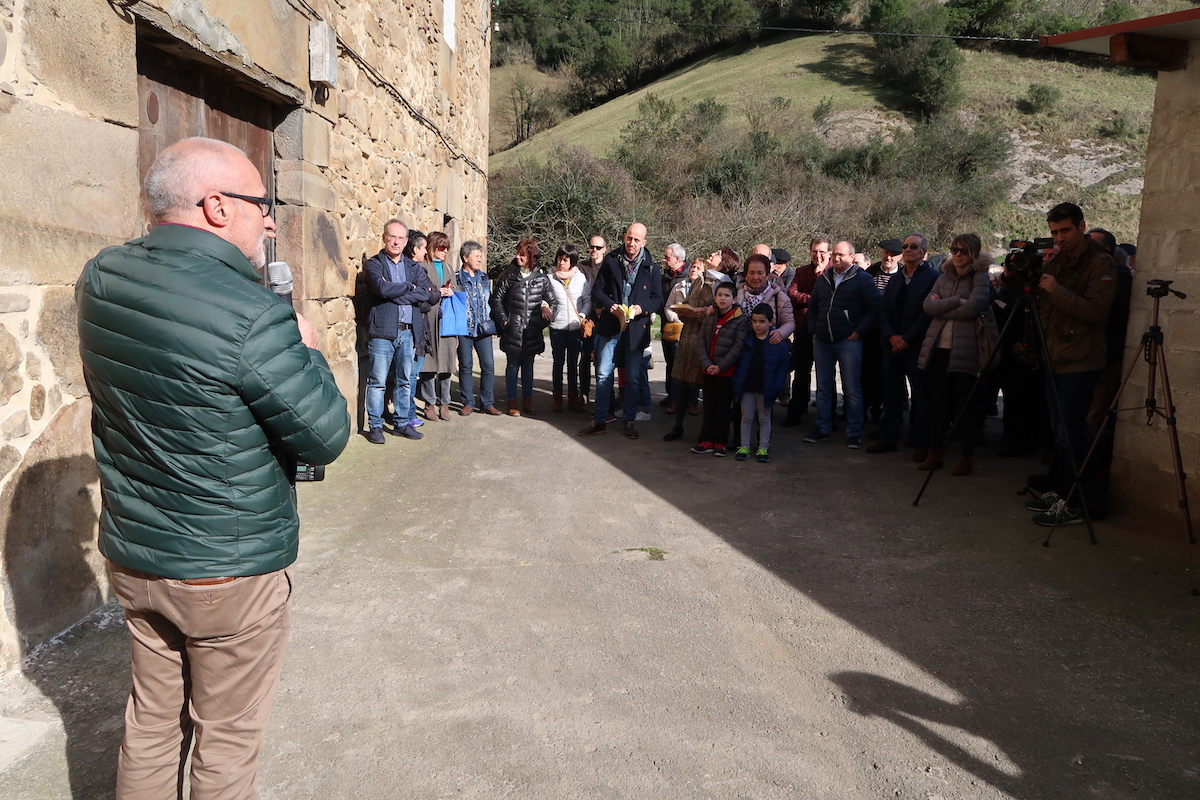 Oroigarri-plaka bat desestali dute Erroiondozar baserriaren atarian, Ataunikerrek jarria. Andoni Salamerok eta Carmen Esteban alargunak hitz batzuk esan dituzte