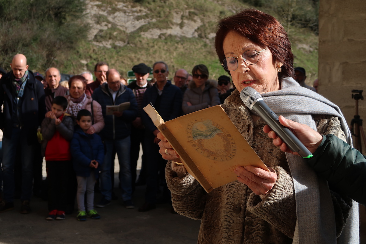 Carmen Esteban alarguna./A. Maiz Duela urtebete itzali zen Joxan Artze Agirre poetaren (Usurbil, 1939 –2018) bizitzako bidaia. Baina, haren lanekin eta ekarpenekin ahaztu gabe, gogoratzen jarraitzen dute oraindik. Ataunen, gaur eguerdian, omenaldia jaso dute Artze zenak eta haren ama Benita Agirrek. Amaren jaiotetxe Erroiondozar baserriaren atarian, Aia auzoan, familiarteko, lagun eta jarraitzaile saldo bat bildu da, eguerdian. Atauniker kultur elkarteak oroigarri-plaka jarri du atarian, Artzeren ataundar jatorria oroituz hasi da ekitaldi xumea.