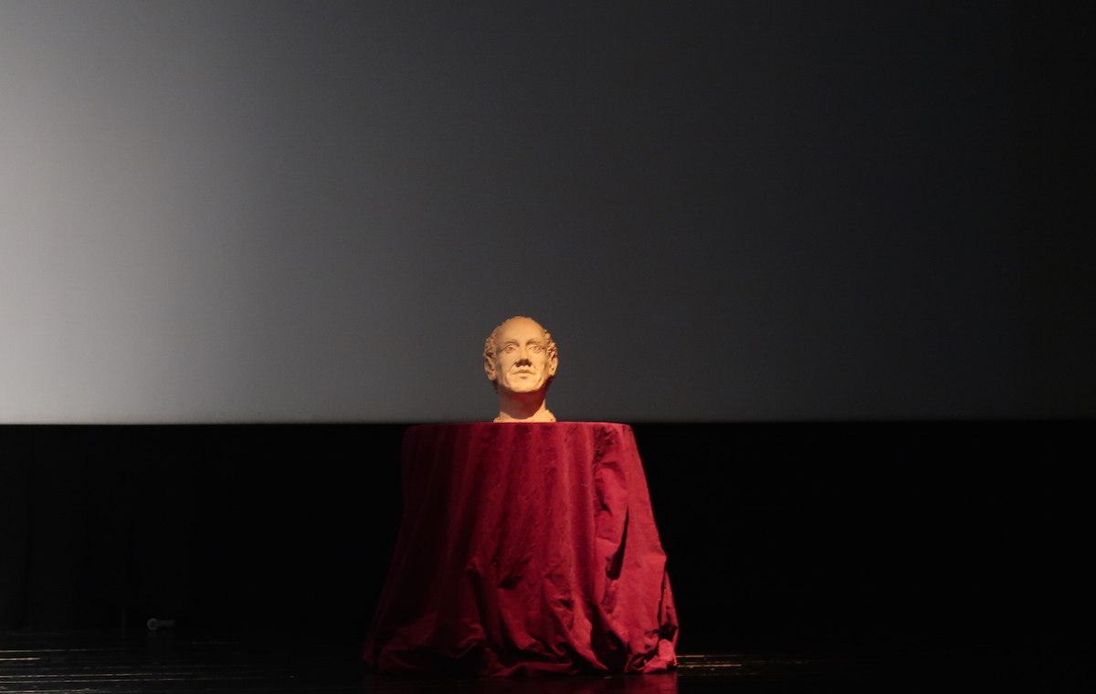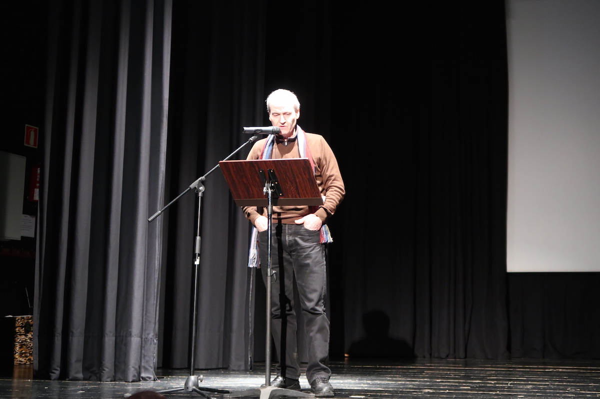Ondoren, Mikel Lertxundi eskultorea eta Asier Rodriguez Ataungo alkatea igo dira oholtzara. Lertxundik Apalategiren bustoaren eta margolanaren aurkezpena egin du, eta Rodriguezek, berriz ere, antolatzaileei eskerrak eman dizkie.