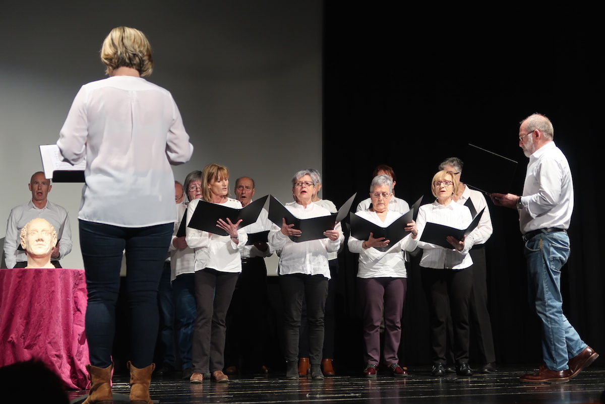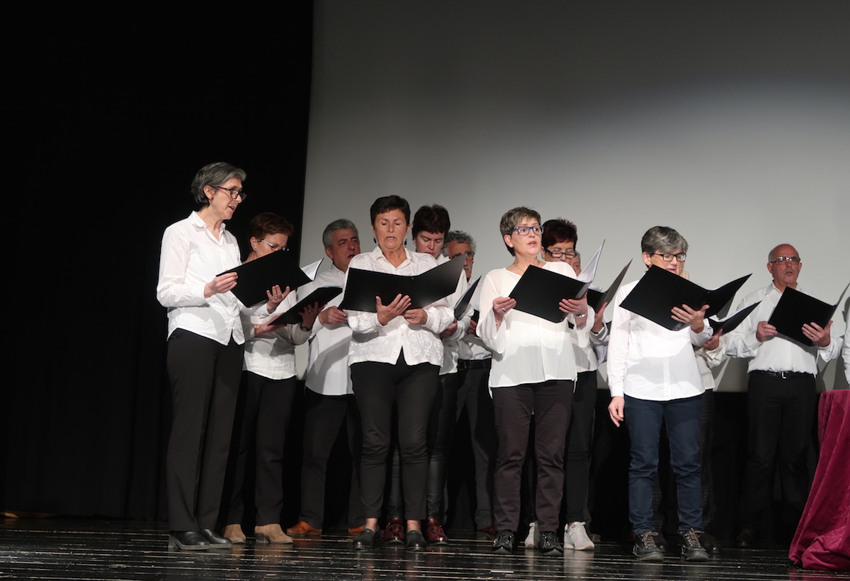 Agurraren lehenengo musika notek hartu dute nagusitasuna oholtza gainean, eta dantzariek koreografia egin diote Lertxundik eginiko bustoari. Ekitaldiari amaiera emateko, azkenik, Ataungo Eate abesbatzako kantariek pare bat kanta abestu dituzte.