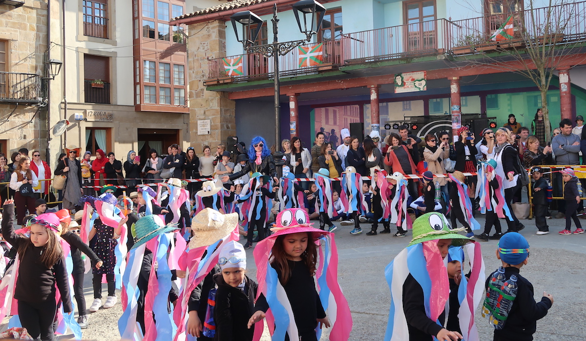 15:15ean hasi da mozorro festa Seguran barrena, eta 15 minuturen buruan iritsi dira herriko plazara. Bertan, haurrek lortu dute protagonismoa, eta dantzak egin dituzte irakasleen laguntzarekin.