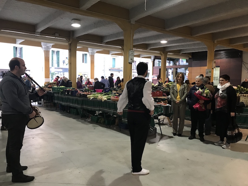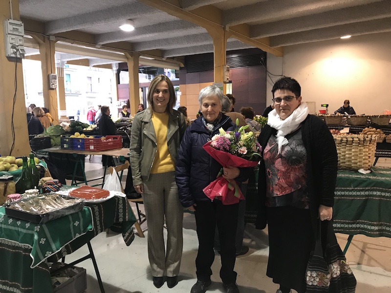 Hasteko, Lazkaoko Altune baserriko Maria Jesus Mujika omendu dute. Txistulariaren doinuarekin, aurreskua dantzatu eta lore sorta eskaini dio Leire Artola zinegotziak. Adinik handieneko azokako saltzailea da lazkaotarra.