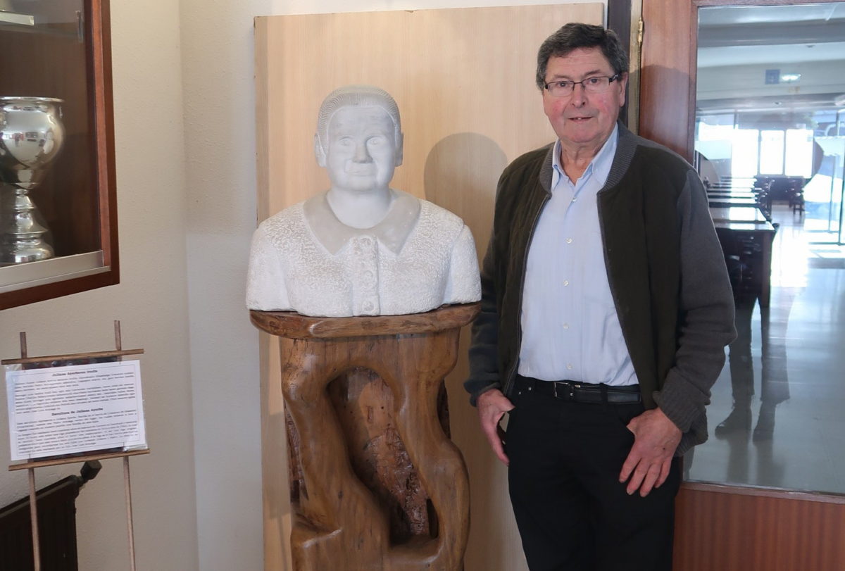 Gizarte Zentroan dago ikusgai, kafetegirako sarrera ondoan. Marmol harriz egindako eskultura da: «Carrarako marmola da, Italiatik ekarritakoa», adierazi du Arzuagak. Bustoa marmolez egina dago, baina egurrezko pieza baten gainean kokatuta. Hori ere Arzuagak landu du: «Sei zulo desberdin egin nizkion, bakoitza bere ezaugarriekin, amak sei seme-alaba izan zituelako».