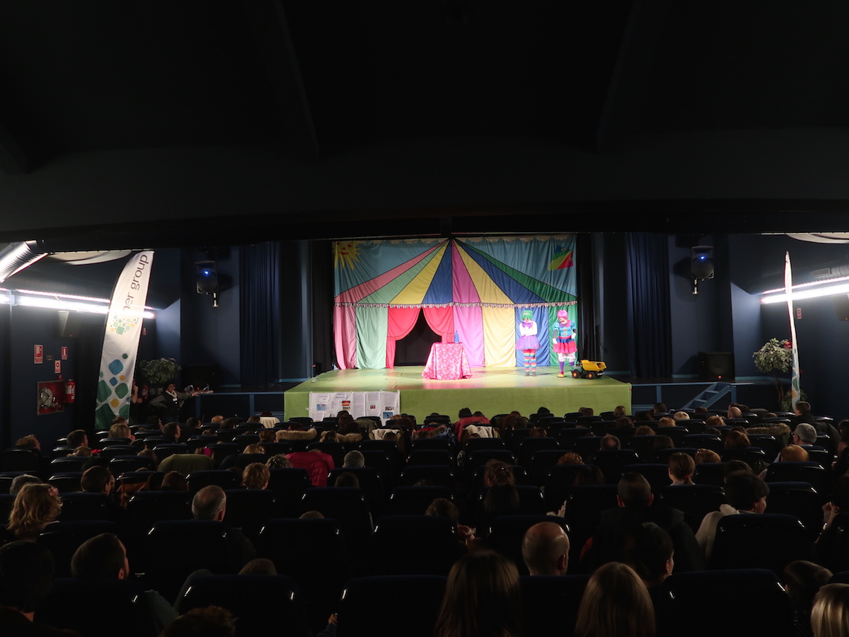 Takolo pailazoak eta haren lan taldeak, Goierriko zortzi ikastetxeetako ikasleekin ikuskizun polita egin dute. Gaurkoa, antolatu dituzten lau jaialdien lehena izan da.