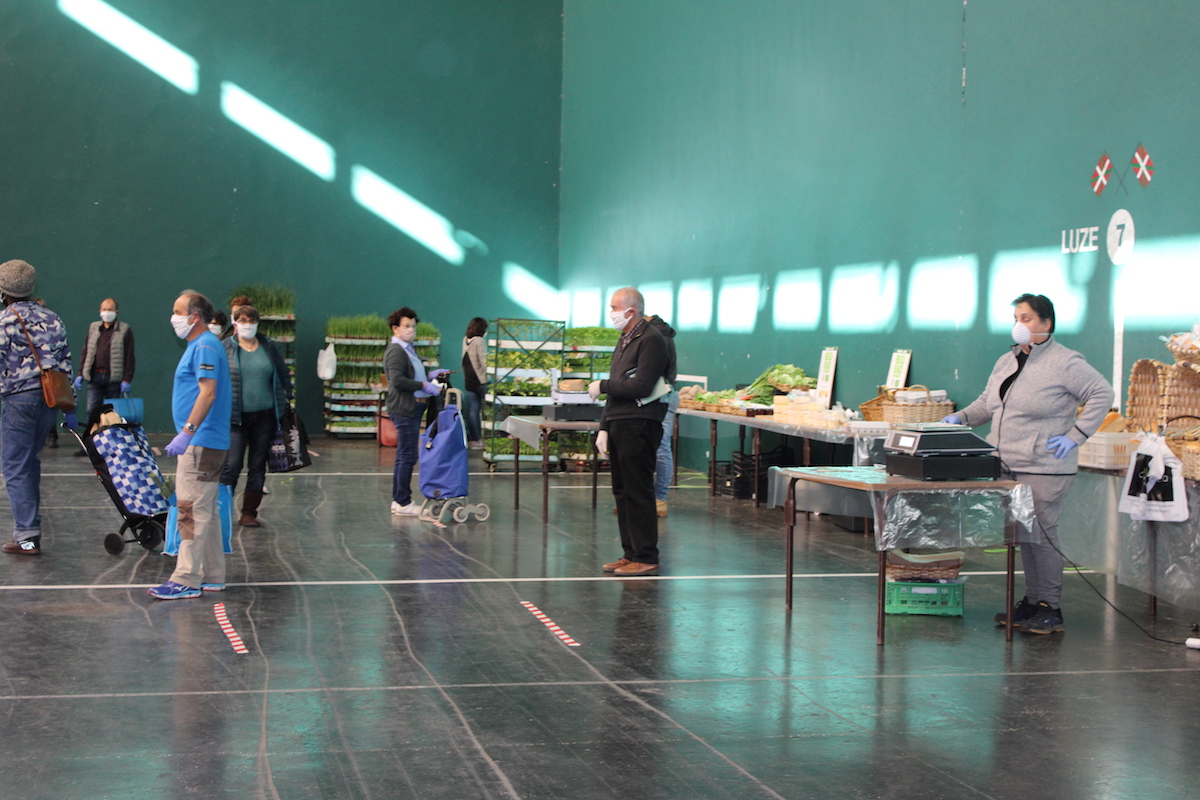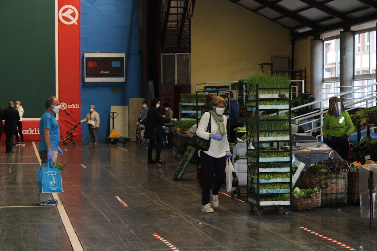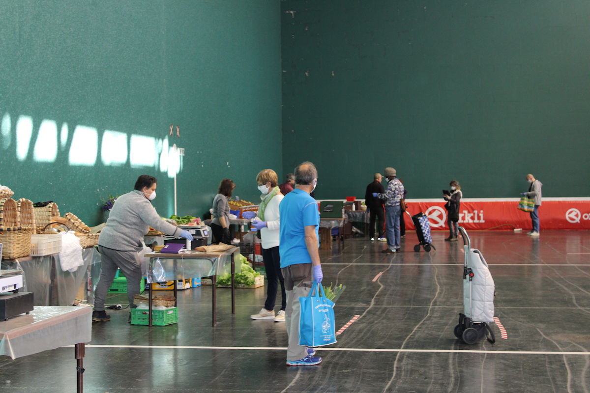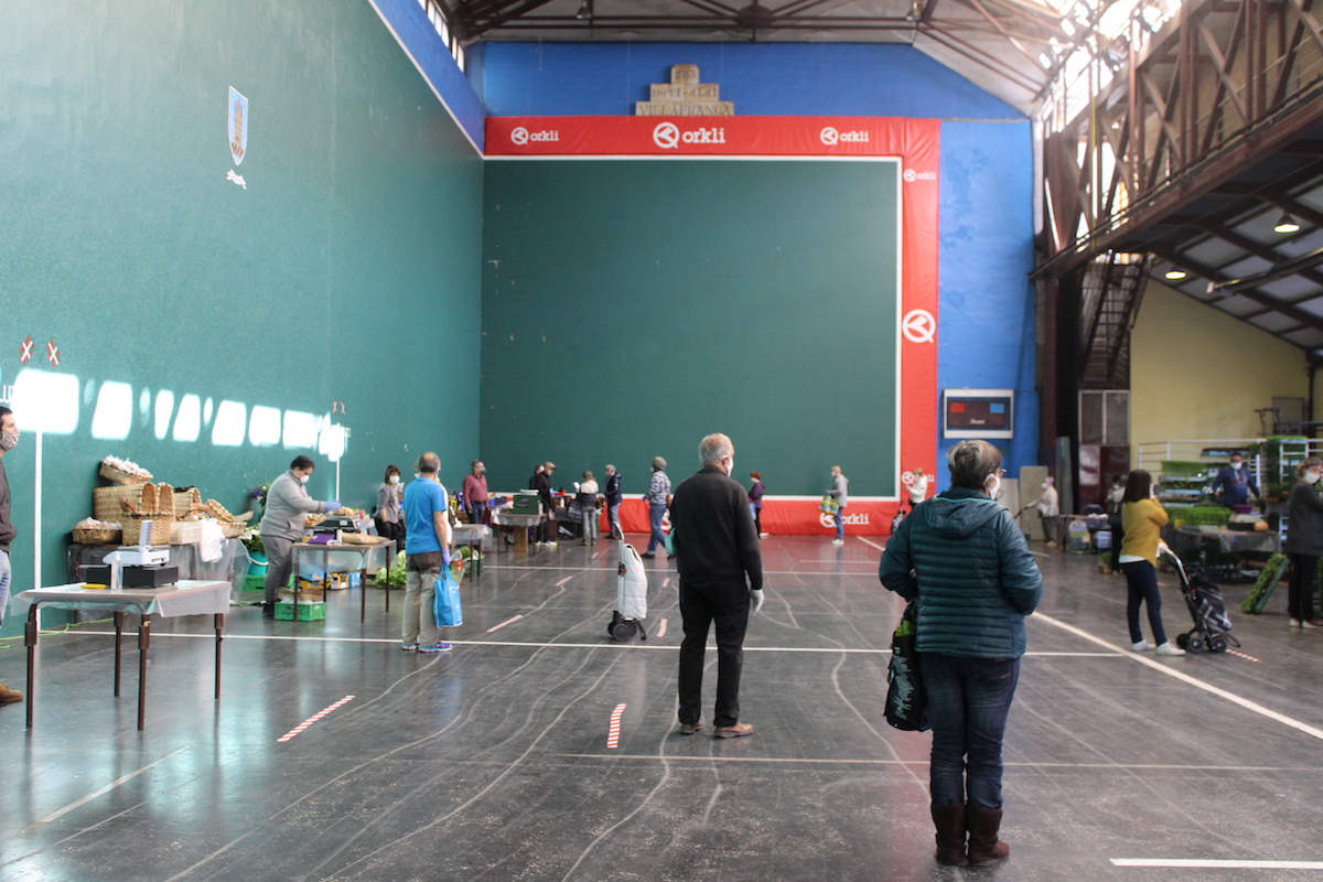 Egoera honetan, baserritarrek frontoian haien produktuak jarri dituzte salgai, asteazkenero egiten duten moduan. Aurreko asteazkenean Eusko Jaurlaritzak azokak debekatu zituen, eta hiru egun beranduago atzera egin eta berrirekitzeko baimena eman zuen. Neurri zehatz eta zorrotzak hartuta alarma egoera hasi zenetik, gaur 10 postu izan dira frontoian, aurreko astean baino bat gehiago: Maite Iturbe okinak ere jarri du postua. Ordiziako 10 jostun boluntariok egindako maskarilak banatu dituzte sarreran erosle guztientzako, El Kilo Ordiziako dendak emandako oihalarekin eginak.