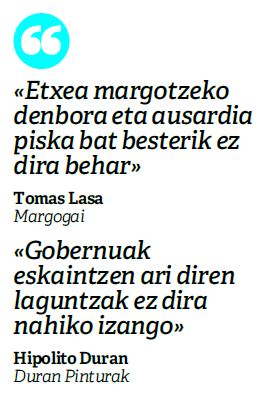 Lasak dioenez, «margotzea erraza da, denbora, ausardia eta trebetasun piska bat bestetik ez du eskatzen». Denbora badu orain jendeak, eta konfinamendua aukera ona da etxea goitik behera aldatzeko, prezio onean gainera, pinturaren kalitate bajuenetik hasita, 100 euroan pisu oso bat margotu daiteke eta. Hezetasunari aurre egiteko margoen aukera, kalitate desberdineko pinturak, koloreak… «gu beti gaude aholkuak emateko prest!». Eta margolari profesionalak ere bai, noski: «Haiek baino hobeto ez du inork egingo!».