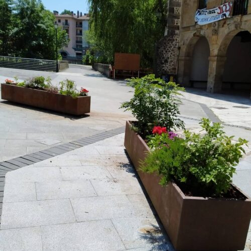 Ataungo loreontzietako bat. // Ataungo Udala. Deskonfinamendu prozesuari esker, geroz eta denbora gehiago igarotzen dugu kalean. Hutsik egon diren herriko txokoak berriz ere bisitatuak izaten ari dira. Hori dela eta, eta herriaren itxura zaindu behar denez, Ataungo Udalak herriko kaleak txukundu eta apaindu ditu; jardinerak eta loreontziak koloretako lorez betez.