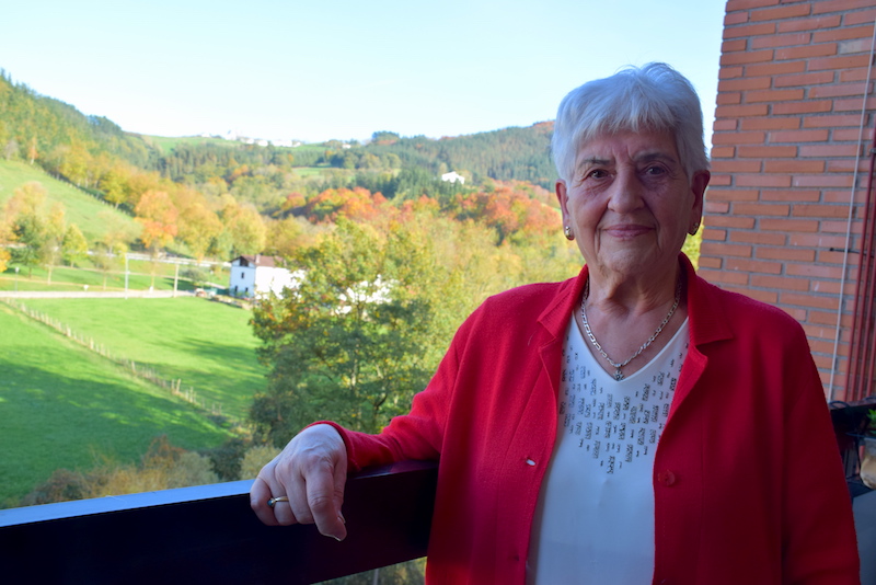 Gogorra izan genuen gaztaroa. Goserik ez genuen ezagutu, baina gazte-gaztetatik hasi behar izan genuen lanean. 13 senide ginen, ni seigarrena, eta zaharrenak ateratzen ziren ogibide bila. Hamar urterekin Aiara bidali ninduten, neskame, Beiztin [Begiristain] baserrira. Emakume bat gaixo zegoen; oso amona jatorra, zenbat aldiz gogoratzen naizen. Lehen behean asko ez bazen, mendi tartean okerrago sentitu nintzen han. Asteburuetan lau neska elkartzen ginen, Aian bertan. Jolasalditxo bat egiten genuen, kartetan edo zerbaitetan, eta iluntzean, oso garaiz, bakoitza bere etxera. Hilabete pare bat etorri gabe egon nintzen Ataunera.