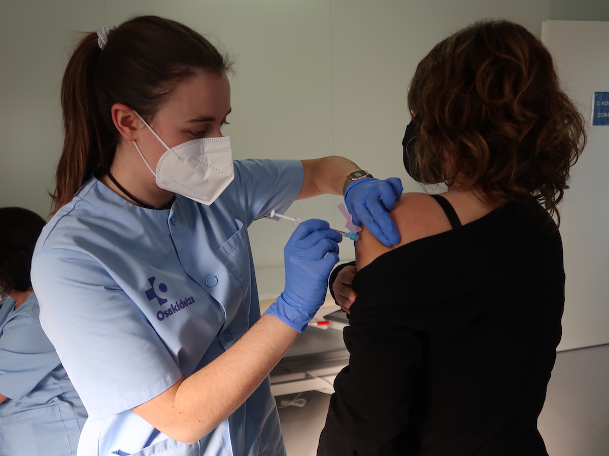 Zumarragako ospitaleko langile bati COVID-19aren aurkako txertoa jartzen. Arg: Ariane Vierbücher Osakidetzako langileak hasi dira COVID-19aren aurkako txertoa jasotzen. Gurutzetako ospitalean izan ziren lehenak eta gaur, Zumarragako ospitalean ere hasi dira. Osakidetzak zehaztu duen protokoloaren arabera, larrialdietan eta Barne Medikuntzan lan egiten duten langileak izango dira txertoa hartzen lehenak. Pfizer etxearen 48 txerto jarri dituzte guztira, eta hemendik 21 egunera, bigarren txertoa jarriko diete. Hurrengo egunetan, egunero txerto kopuru bera, 48, jartzea espero dute. Ospitaleko langileez gain, Goierriko eta Urolako osasun zentroetako langileei ere jarriko diete txertoa Zumarragako ospitalean.