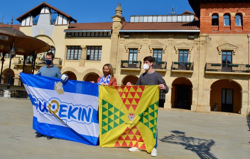 Realeko autobusa Gipuzkoako herri guztietako banderak jasotzen dabil egunotan. Atzokoan, esaterako, Beasainen (irudian), Ordizian eta Idiazabalen izan ziren. Bildutako bandera guztiak Sevillara eramango dituzte, Kopako finalean gipuzkoar guztiak ordezkatuta egon daitezen. Trukean, Realak gurea dioen bandera txuri-urdina eman die udalei, balkoitik zintzilika dezaten.