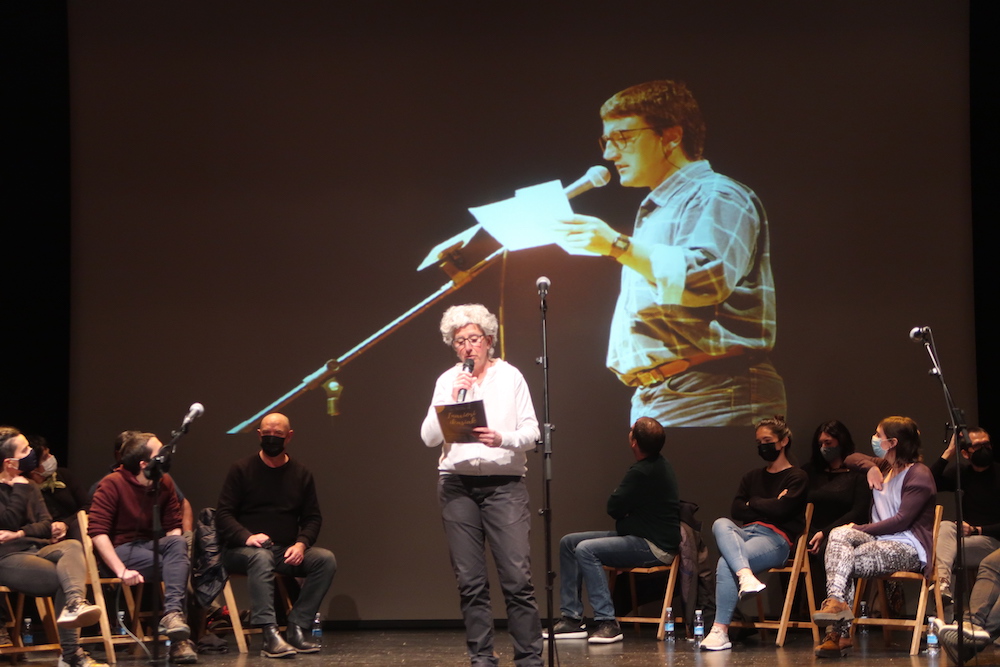 «Bihurrikeria txiki bat» eginez, ondora aurrerarazi zituen Tere emaztea, Azkune «erreferente izugarria», Joxepa Madariaga Gerrikon «amets utopikoak egia bihurtzen» aritua, Asier Iriondo gai jartzaile, Emun-eko lankide eta «inurri lanean nekaezina», eta Egaña eta Maddi Aiestaran bertsolariak, lehenaren eta geroaren ikur eta oholtzako ardatz.