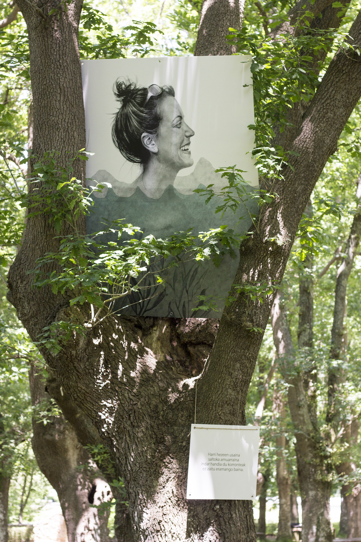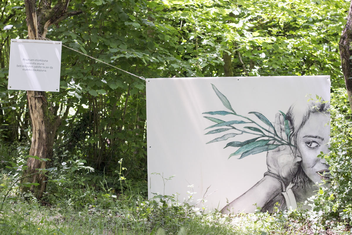 Lurretikan erakusketa Oiangun // A.Garmendia Arteria Plataformako lehen saria irabazi zuten pasa den otsailean Amaia Iturrioz bertsolari urretxuarrak eta Maite Arbonies ilustratzaile zumarragatarrak emakumea eta natura uztartzen dituen proiektuarekin. Gaurkoan, Oiangu parkera eraman dute Lurretikan izeneko erakusketa, bisitariei esperientzia sentsorial eta poetiko bat aurkezteko asmoz. Guztira 20 pertsona inguru gerturatu dira gaur eguerdian Oiangu parkera 13:00etan egin duten saiora, baina 11:00etan eta 18:00etan ere antolatu dituzte bisitak.