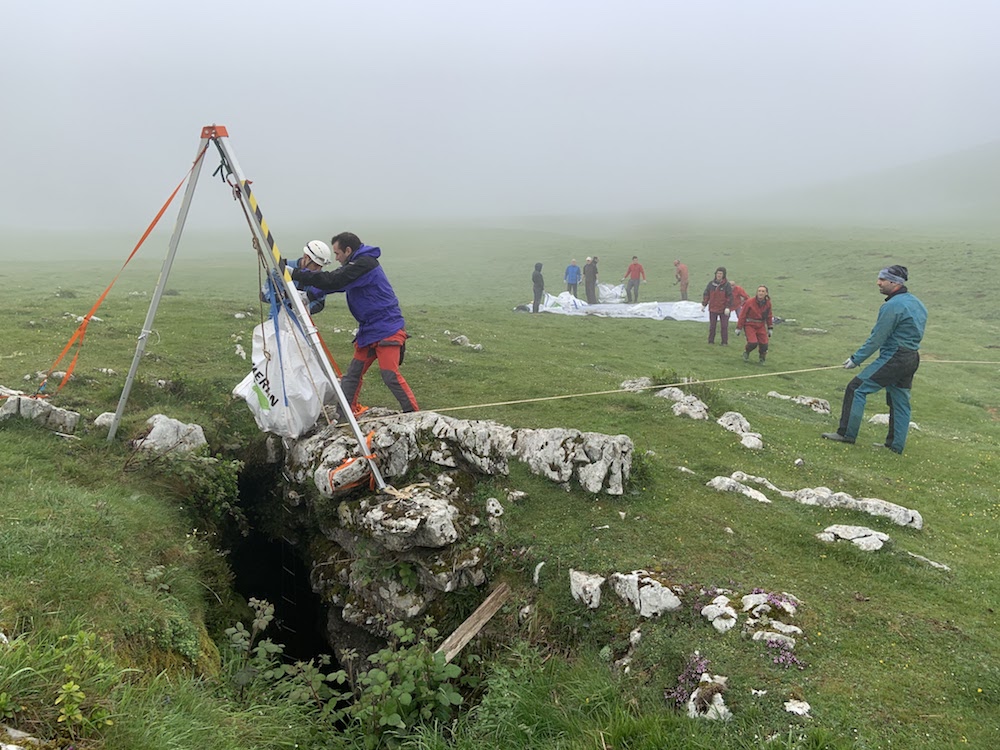Enirio-Aralarko Mankomunitateak igande goizerako zeukan hitzordua jarrita, Saltarriko troska garbitzeko. Sarbide zaila du, lurreko zulotik bertikalean jaitsi behar delako. Horregatik, Felix Ugarte Espeleologia Elkarteko kideak izan dira gidari. Hiru hankako euskarria muntatu, eta sokekin gora jaso dituzte zaborrez betetako obra-zakuak.