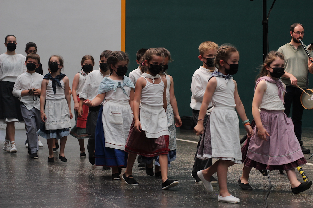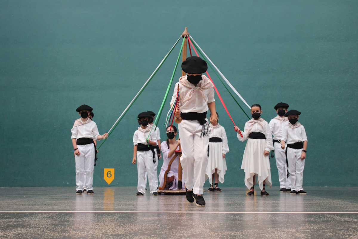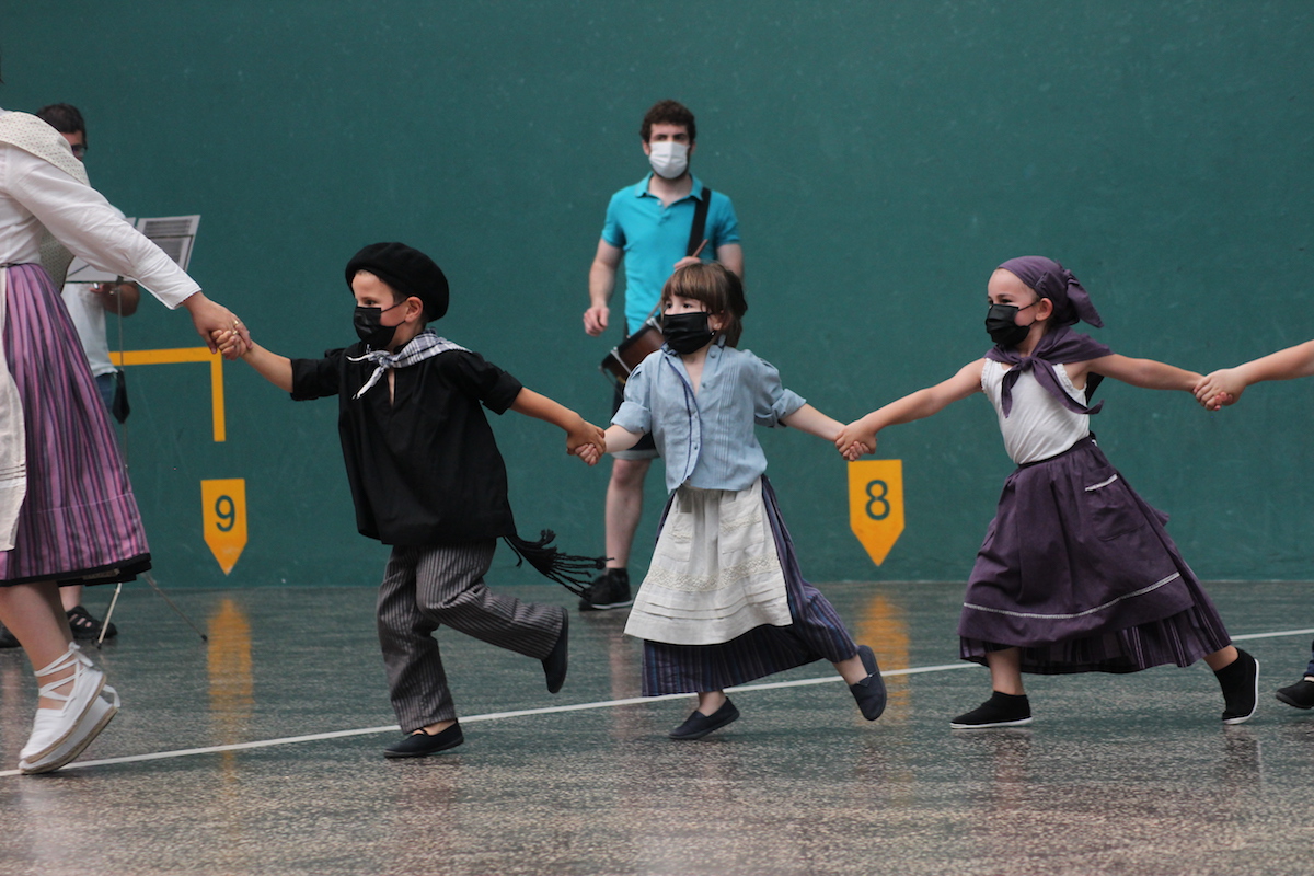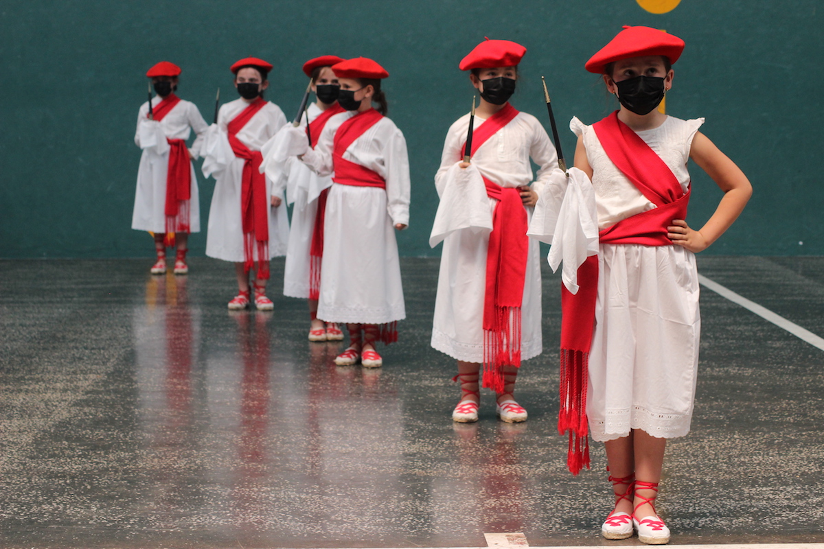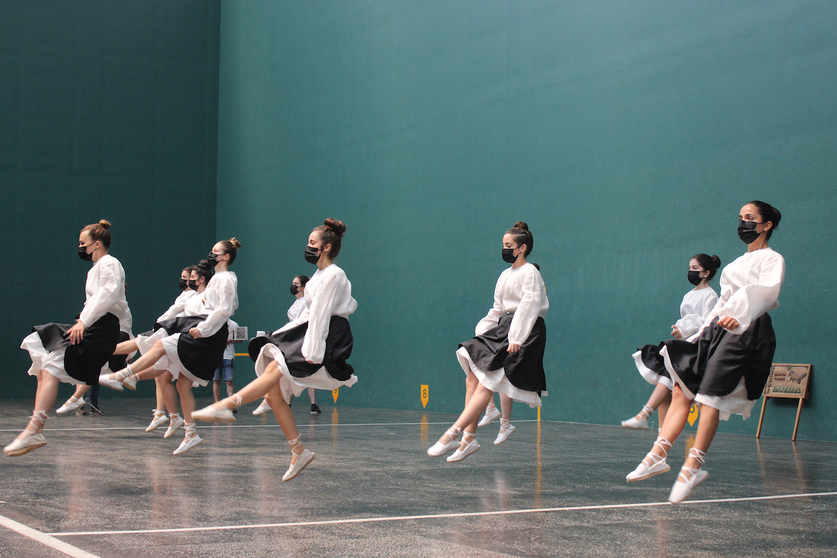 Axari Dantza Taldearen bigarren emanaldia. // A.Garmendia Axari Dantza Taldeak ikasturte amaierako bigarren dantza emanaldia eskaini du gaur eguerdian Igarondo pilotalekuan. Herritarrak dantza saioak ikusteko gogotsu zeudela nabaritu da pilotalekuko eserlekuetan, izan ere, egun bakoitzean 114 ikusle hurbildu dira emanaldiaz gozatzeko asmoz, aforoak uzten zuena.