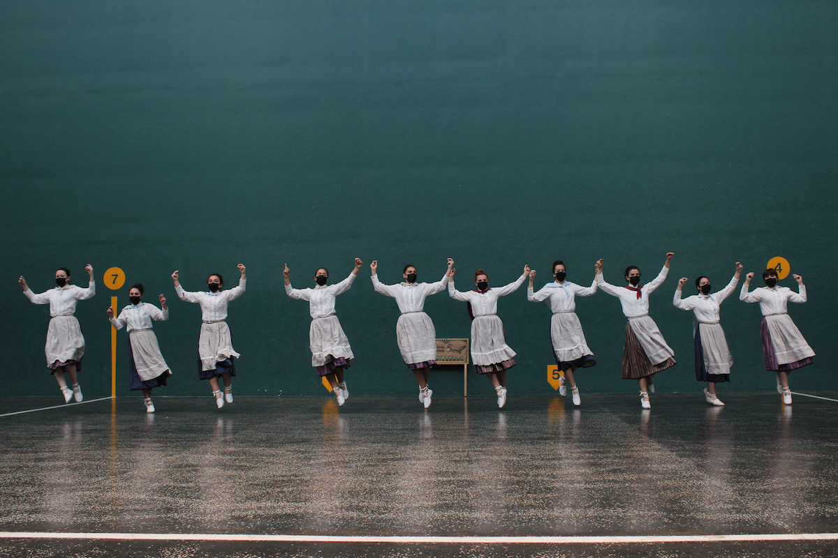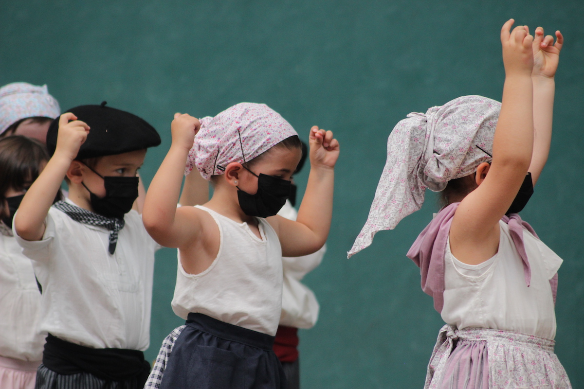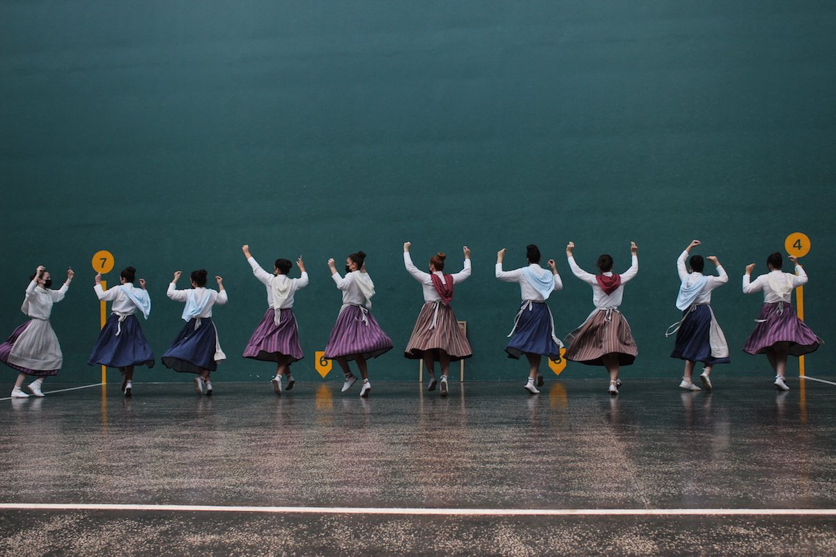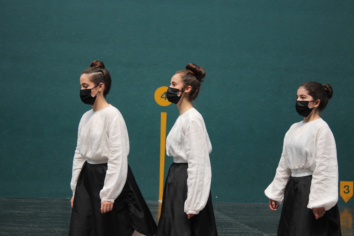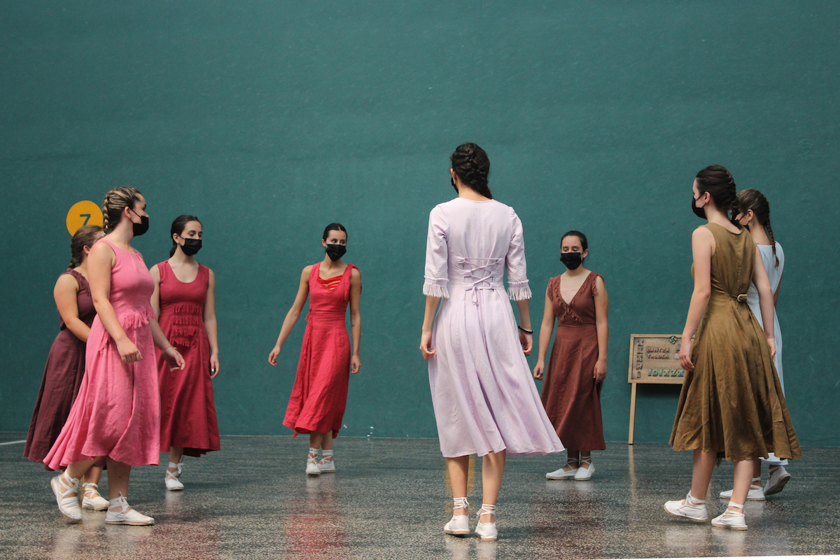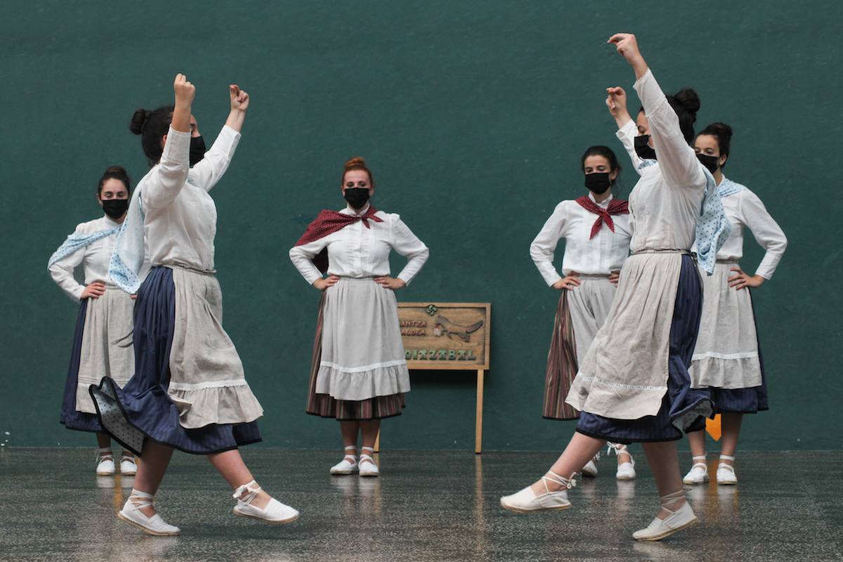 Axari Dantza Taldearen bigarren emanaldia. // A.Garmendia Axari Dantza Taldeak ikasturte amaierako bigarren dantza emanaldia eskaini du gaur eguerdian Igarondo pilotalekuan. Herritarrak dantza saioak ikusteko gogotsu zeudela nabaritu da pilotalekuko eserlekuetan, izan ere, egun bakoitzean 114 ikusle hurbildu dira emanaldiaz gozatzeko asmoz, aforoak uzten zuena.