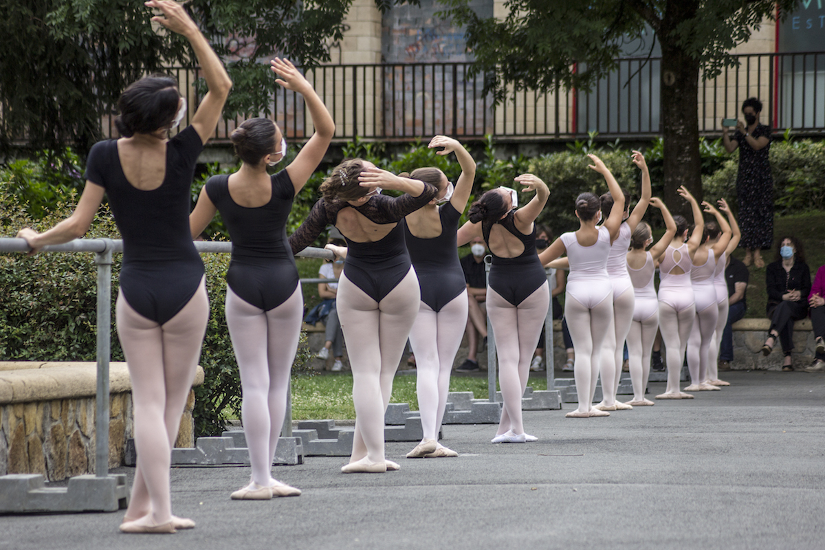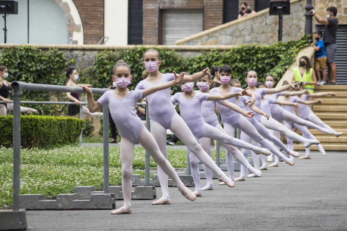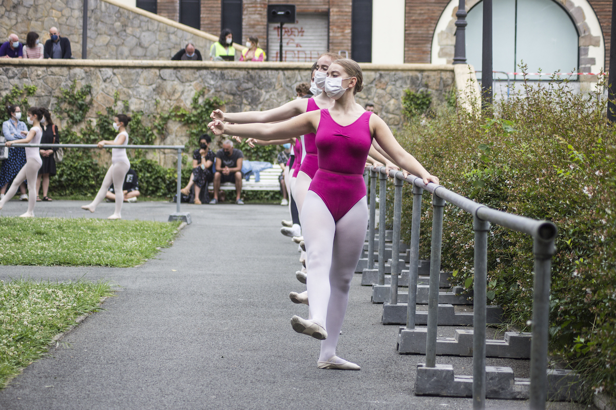 Ordiziako Barrena parkea ballet dantzariz bete da gaur eguerdian. Amets Bide dantza taldekoek "barandilla" egin dute