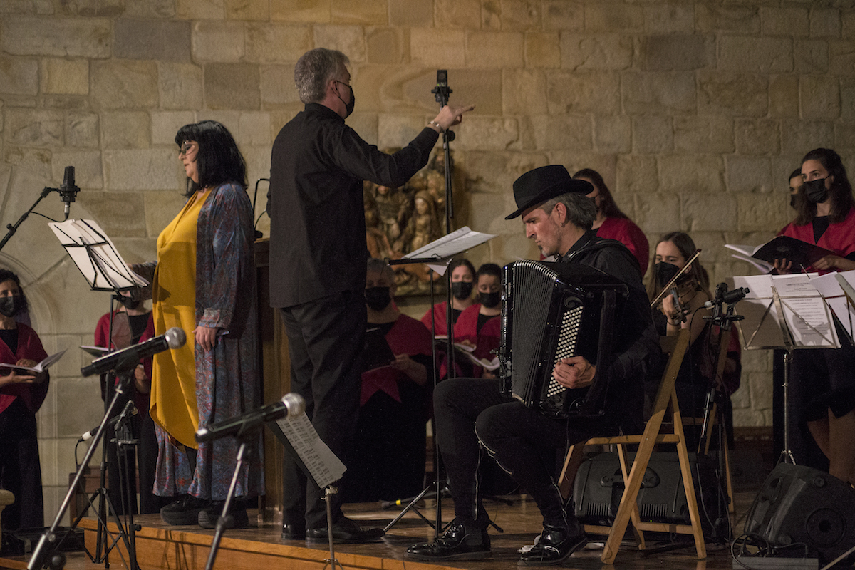 Gorka Hermosa, ordea, ez da bakarrik aritu Urretxuko Udalaren enkarguz konposatutako obra honetan. Joseba Apaolaza aktore urretxuarra izan da gaurko emanaldiari sarrera eman diona, Iparragirreren inguruko pasarteak kontatuz, eta bera izan da Gorkari, Marina Pardo mezzosopranoari, Blanchard Strings orkestrari eta Easo abesbatzari ikuskizunarekin hasteko bidea eman diena.
