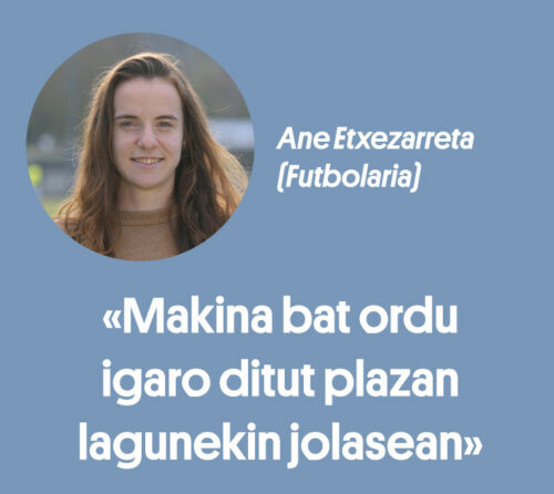 Udaletxeko arkupeak ateak dira futbolean jolasean dabiltzan haurrentzat. Ane Etxezarreta Realeko jokalaria haur horietako bat izan zen. «Makina bat ordu igaro ditut plazan lagunekin jolasean», aitortu du. Beasaingo txoko kutunetako bat du. «Jada ez naiz horrenbeste igarotzen bertatik. Baina irudipena dut haurrek gutxiago jolasten dutela».