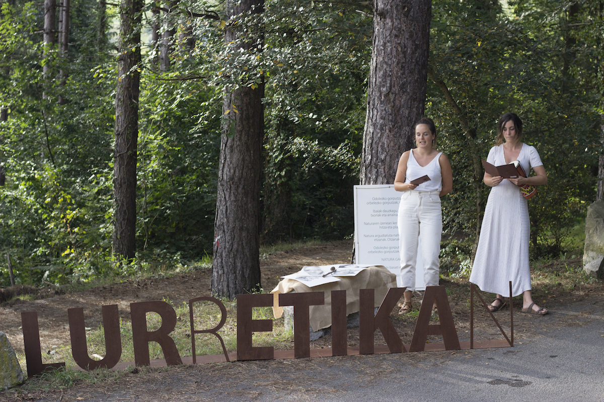 Bisitariak Lurretikan esperientzia sentsorialean // A.Garmendia Itzuli da berriro ere Amaia Iturrioz bertsolari urretxuarrak eta Maite Arbonies ilustratzaile zumarragatarrak sortutako lana. Pasa den otsailean Arteria Plataformako lehen saria irabazi zuten bi goierritarrek, eta hasiera batean erakusketa soil bat zena, esperientzia sentsorial bilakatu zuten Arbonies eta Iturriozek. Maiatzean Oiangu parkera eraman zuten Lurretikan izeneko lana, eta gaurkoan, berriz, Urretxura.