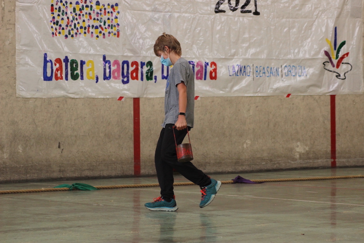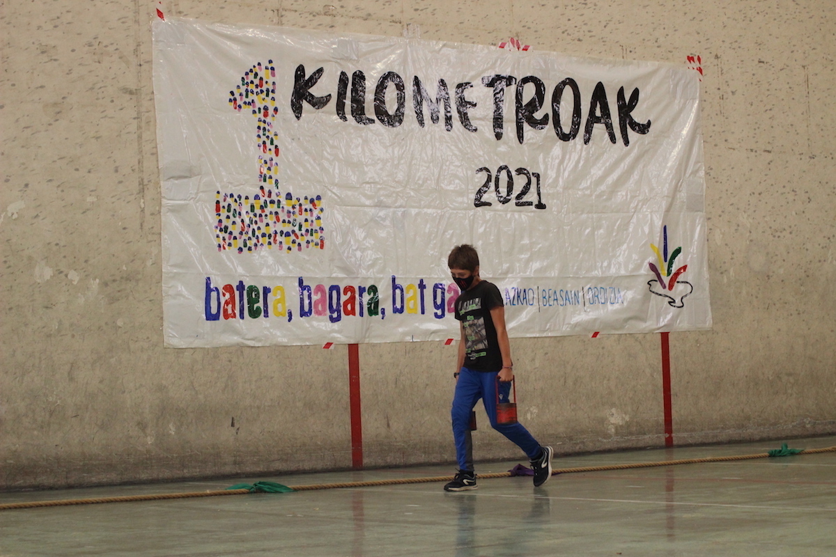 Kilometroak 2021eko jolasak Lazkaon // A.Garmendia Eguraldi txarrari aurpegi ona jartzea lortu dute gaurko egunean Kilometroetan ibili diren antolatzaile zein haurrek. Goizean egindako gizakate eta ekitaldiaren ondoren, jolasen garaia iritsi da Lazkao, Ordizia zein Beasainen. Hamaika haur bildu dira hiru herrietako frontoietan egun honetarako prestatuta zeuden jokoetan jolastu ahal izateko.