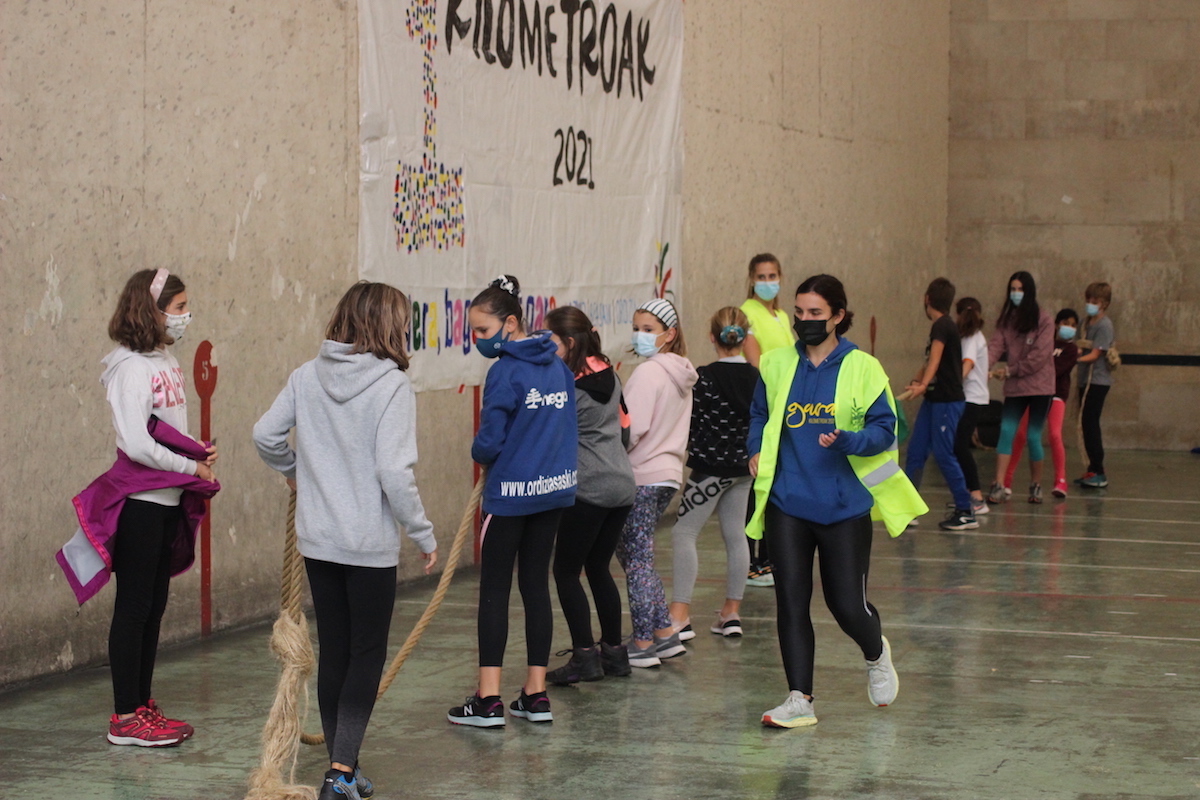 Sokatiran, slackline-an, oskol jokoan, ur-jokoetan, imintzioetan eta beste hainbat jolasetan parte hartzeko aukera izan dute Kilometroetara inguratu diren umeek. Ordiziako frontoi estalian LH3 eta LH4ko ikasleak ibili dira, Beasainen, berriz, LH1 eta LH2koak, eta Lazkaon LH5 eta LH6ko haurrak.