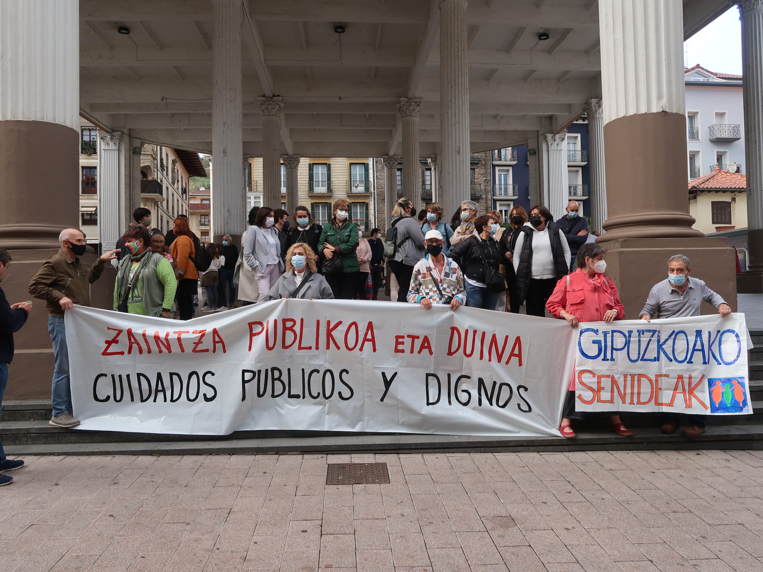 Ordiziako Plaza Nagusiko ekitaldia baliatu zuten erakundeei exijitzeko “zaintza publikoa, kalitatezkoa eta duina”, eta horren bidean, “adineko pertsonen egoitzetako lan gatazka luzeari konponbidea ematea guztiz beharrezkoa” dela nabarmendu zuten, Gipuzkoako Senideek.