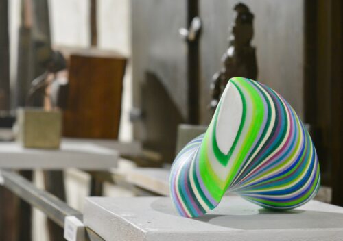Material, kolore eta forma anitzeko erakusketa da. Propio sortutako piezak dira batzuk. Muga bakarra tamaina zen, horrenbeste izanda toki arazorik ez egoteko 20x20x20 zentimetroko dimentsioak ez dituzte gainditzen. Torresek Hondan lana erakutsiko du. Kutsu arkitektonikoa duen altzairuzko pieza da. «Egurra urteetan landu dut. Baina material guztiak bezala bere mugak ditu. Altzairua lantzen hasi nintzen, nire nahietara hobeto egotzen zelako». Torres beasaindarra izan arren Elgoibarren (Gipuzkoa) du lantokia.