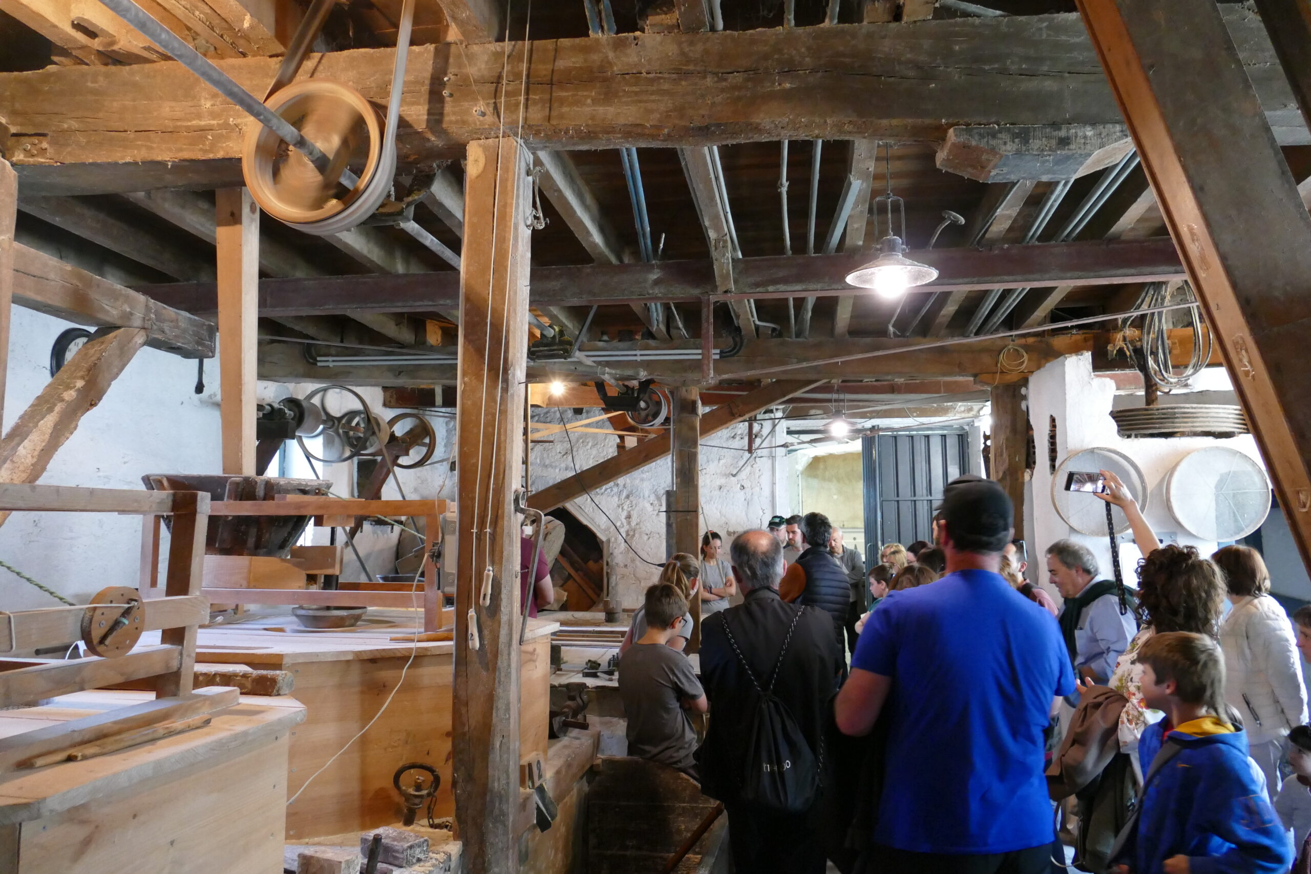 Aurretik, errotara ura garraiatzeko ubidea eta presa ikusi dute bertaratuek. Jende ugari batu da eta txanda guztiak bete dituzte, bi goizez eta beste bi arratsaldez. Ordu eta erdiko bisita gidatuan, presa eta errotarriak ikusi ostean, eraikinaren barrura igaro dira bertaratuak. Ibaresen historia azaltzen duten argazki eta dokumentu batzuk dauden gelan egin dute lehen geldialdia eta jarraian iritsi dira poleaz betetako gunera. Uhateak ireki dituztenean, polea guztiak martxan jarri eta makinaria guztia biraka hasi da.