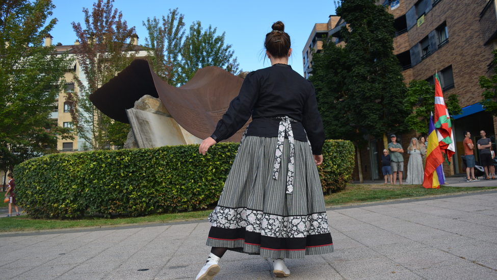 Ehun bat lagun elkartu ziren oroigarriaren inguruan. Gehienak, helduak, baina haurrak ere bazeuden. Aski biltzen garenik / ez zait iruditu / ez gaitezen etxean / eta mutu gelditu / memoriak hitzak eta hankak / behar ditu, kantatu zuen Ekaitz Goikoetxeak. Udaletxean ordezkaritza duten hiru alderdietako kideak bertan zeuden.