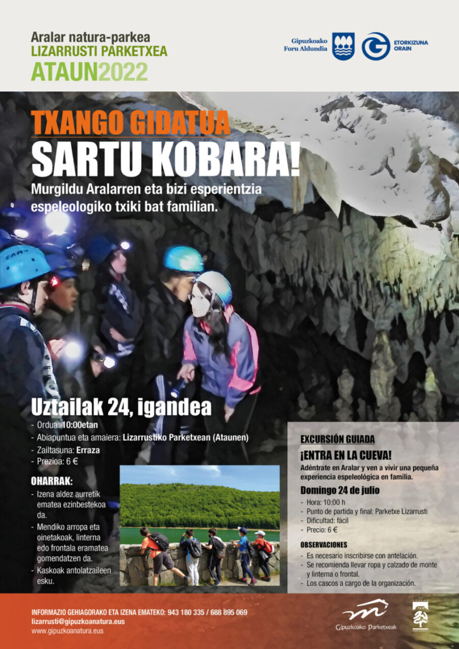 "Sartu Kobara!" bisita gidatua bihar Ataunen, esperientzia espeleologiko txiki bat bizitzeko aukera Lizarrustiko parketxean, gizeko 10:00etan.