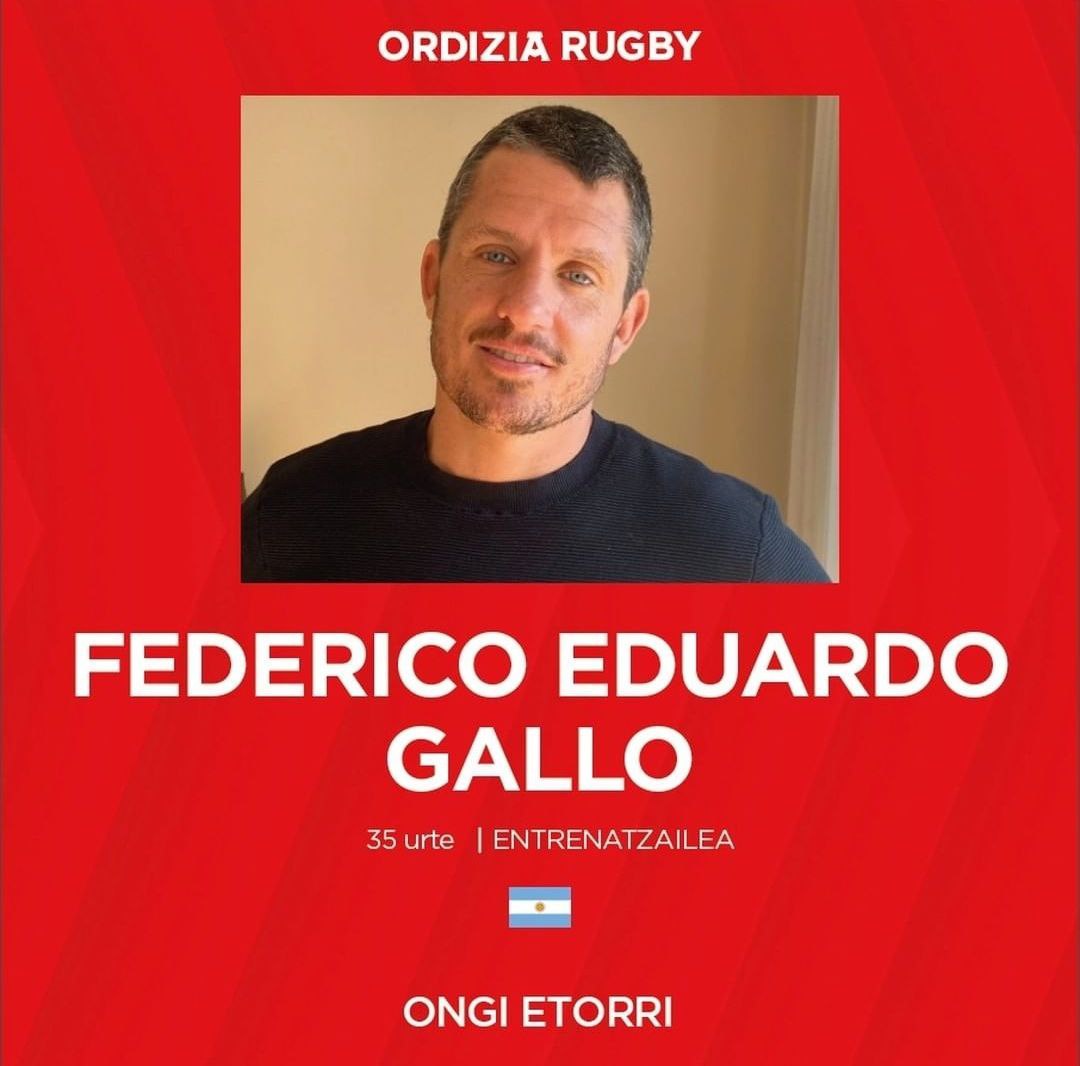 Argazkia: Ordizia Rugby. Federico Eduardo Gallo izango da Ampo Ordiziako entrenatzaile berria. 35 urteko argentinarra da eta 12 urte daramatza entrenatzaile lanetan, talde desberdinetan. Horrez gain, Unión Rugby Buenos Airesko hautatzailea izan da 17 urtez azpikoen mailan; baita URBA top 12ko txapeldunordea ere. San Isidro klubean eman ditu bere ibilbideko azken pausuak, defentsak eta aurrelariak entrenatzen eta orain, Ordiziara iritsi da. Arturo Rivas izango du bidelagun Ordizian, bigarren entrenatzaile eta prestatzaile fisiko gisa. Eskarmentu handiko gizona da Gallo eta datorren denboraldian Ordiziako errugbi taldearen gidari izango da.