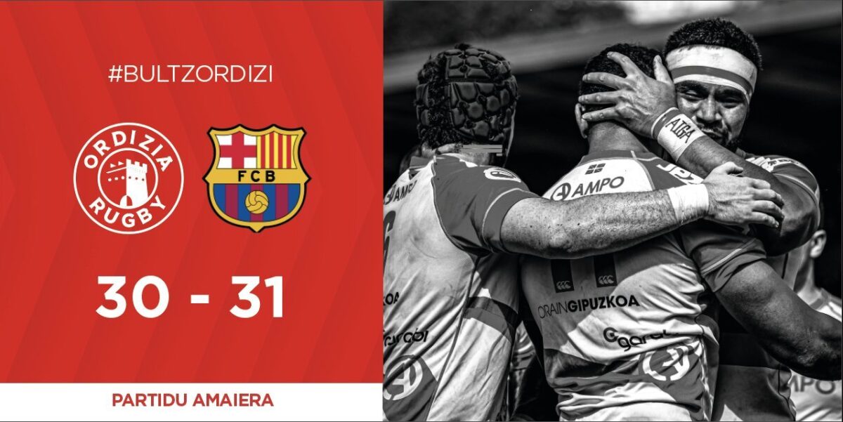 Ampo Ordiziak galdu egin du ligako lehen partida, Bartzelonaren aurka, 30-31. Atsedenaldira 13-17 iritsi da aurretik Bartzelona eta bigarren zati osoan zehar elkar aurreratuz ibili dira, norgehiagokan. Azkenean, 70.minutuan 27-31 zutela markagailua talde ordiziarrak zigor kolpea izan du alde, baina markagailua 30 puntura igotzea lortu duen arren Valentin Cruzen ostikadak, ez da nahikoa izan gaurkoan irabazteko. Hala ere, taldeak sare sozialetan azaldu duenaren arabera, hurrengo jardunaldian irabazteko lanean jarraituko dute.