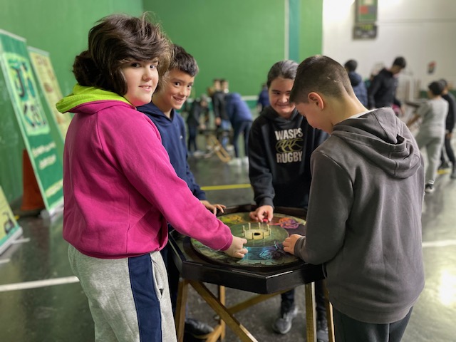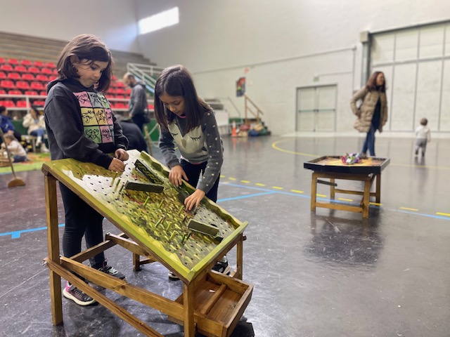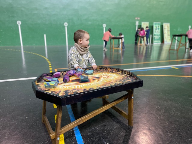 Bi gunetan banatu zituzten jolasak, batetik, 0 eta 3 urte arteko haurrentzako Montessori gunea eta bestetik, “3 eta 103 urte bitartekoentzat” Larun izeneko instalazio parte hartzailea. Jolas guztiak egurrez egindakoak dira eta Unai Ruiz margolariak margotuta daude.