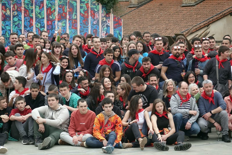 Taldeko argazki jendetsua Errebote plazan atera zuten bazkaldu aurretik, eta ondoren, 19:00etan hasita Distopia Elektrotxarangak jarri zuen kale animazioa.