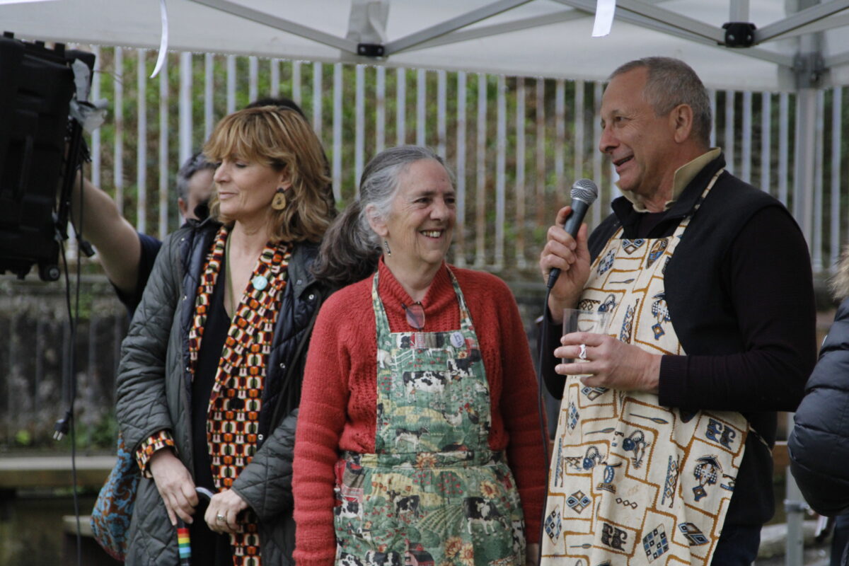 Ekitaldiari amaiera emateko Juli Etxarri leitzarrak irrintzia bota du eta topa egin dute guztiek, «mugak ezabatzearen alde». Kuxkuxtu Txarangaren doinuek lagunduta.