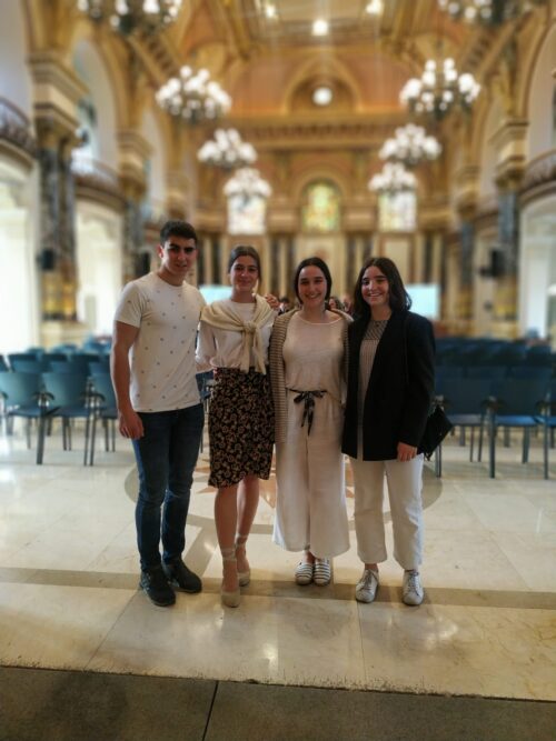 San Benito ikastolako 2. Batxilergoko ikasleak, Donostiako udaletxean, Deusturen enpresa ideia onenen lehiaketako sari emate ekitaldian./Hitza Lazkaoko San Benito Ikastolako Batxilergoko 2. urteko ikasle talde bat Deustuko Unibertsitatearen Enpresa Ideia Onenaren 32. Lehiaketan finalista geratu da. Donostiako campuseko Ekonomia eta Enpresa Zientzien ESME Fakultateko Junior Enpresak antolatuta, lehengo ostiralean jaso zuten aitortza, Donostiako udaletxean egindako ekitaldian.