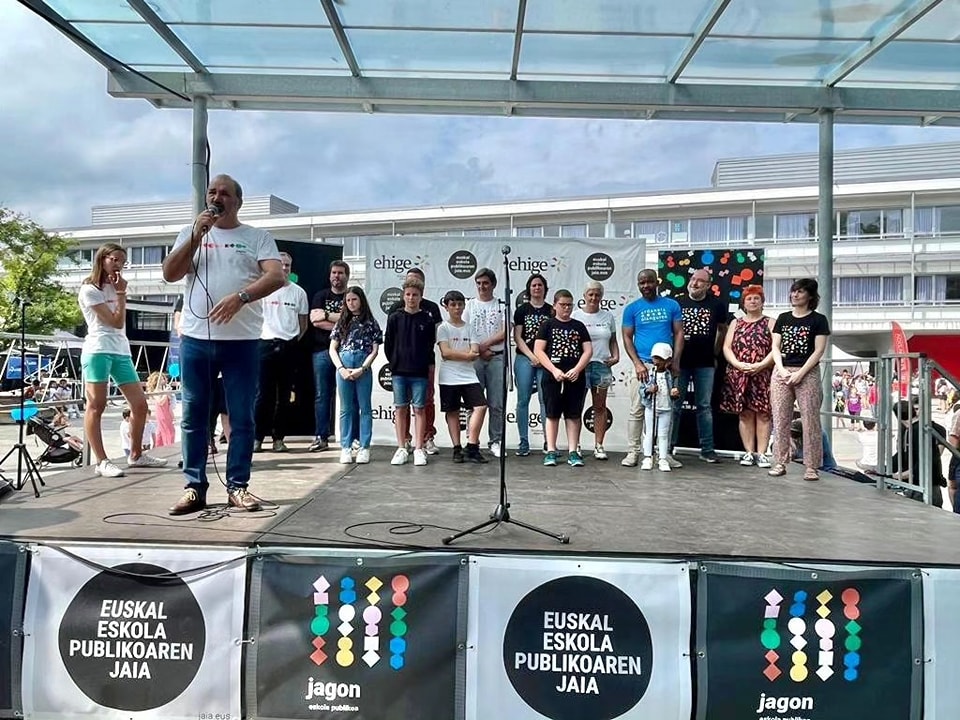 Euskal Eskola Publikoaren 30. jaia, igandean, Mungian. Igandean Mungian (Bizkaia) izan zen Euskal Eskola Publikoaren 30. jaia. Milaka lagun elkartu ziren bertan, Jagon lelopean, euskal hezkuntza sistema publikotasunetik aldarrikatzeko. Ekitaldian, lekukoa eman zieten Ordiziako Urdaneta-Oianguren eskola eta institutuko ordezkariei. Hurrengo urtean, 2024an, Ordizian ospatuko da 31. Euskal Eskola Publikoaren jaia.