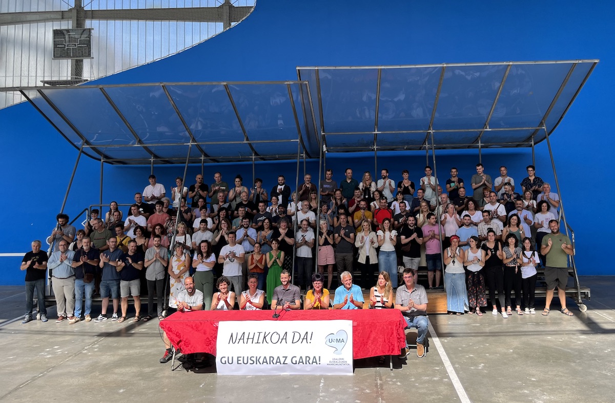 Uemako hautetsien agerraldia, gaur, Usurbilen, tartean Goierriko hainbat. Agerraldi jendetsua egin dute gaur Uema Udalerri Euskaldunen Mankomunitateko hautetsiek Usurbilen (Gipuzkoa). Udalerri askotako ordezkariak elkartu dira, 125 alkate eta hautetsi, eta agiri bat irakurri dute Espainiako Auzitegi Konstituzionalak udalei euskara hutsez funtzionatzeko bidea ezeztatu dien sententzia deitoratzeko. Udal legearen artikulu batek zehazten du zehazki euskarazko funtzionamendu hori; agiriak euskaraz bakarrik egiteko irizpideak zehazten ditu, eta horren kontrakoa izan da epaia. «Nahikoa da. Nahikoa dela esatera etorri gara gaur Uemako ordezkariok», esan dute. Mankomunitateko jarduneko lehendakari Iraitz Lazkanok irakurri du agiria. Txalo zaparrada handi batekin amaitu dute.