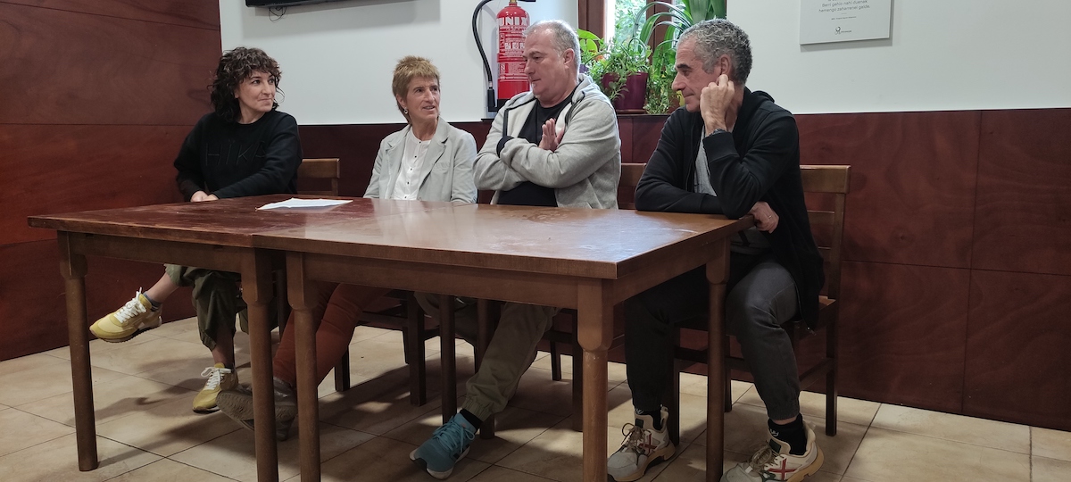 Jon Elortza, Ana Ramos eta Joxemari Apaolatza kirol kazetariak Arriarango Intxaurpe elkartean izan dira haien lanbideaz hitz egiten.