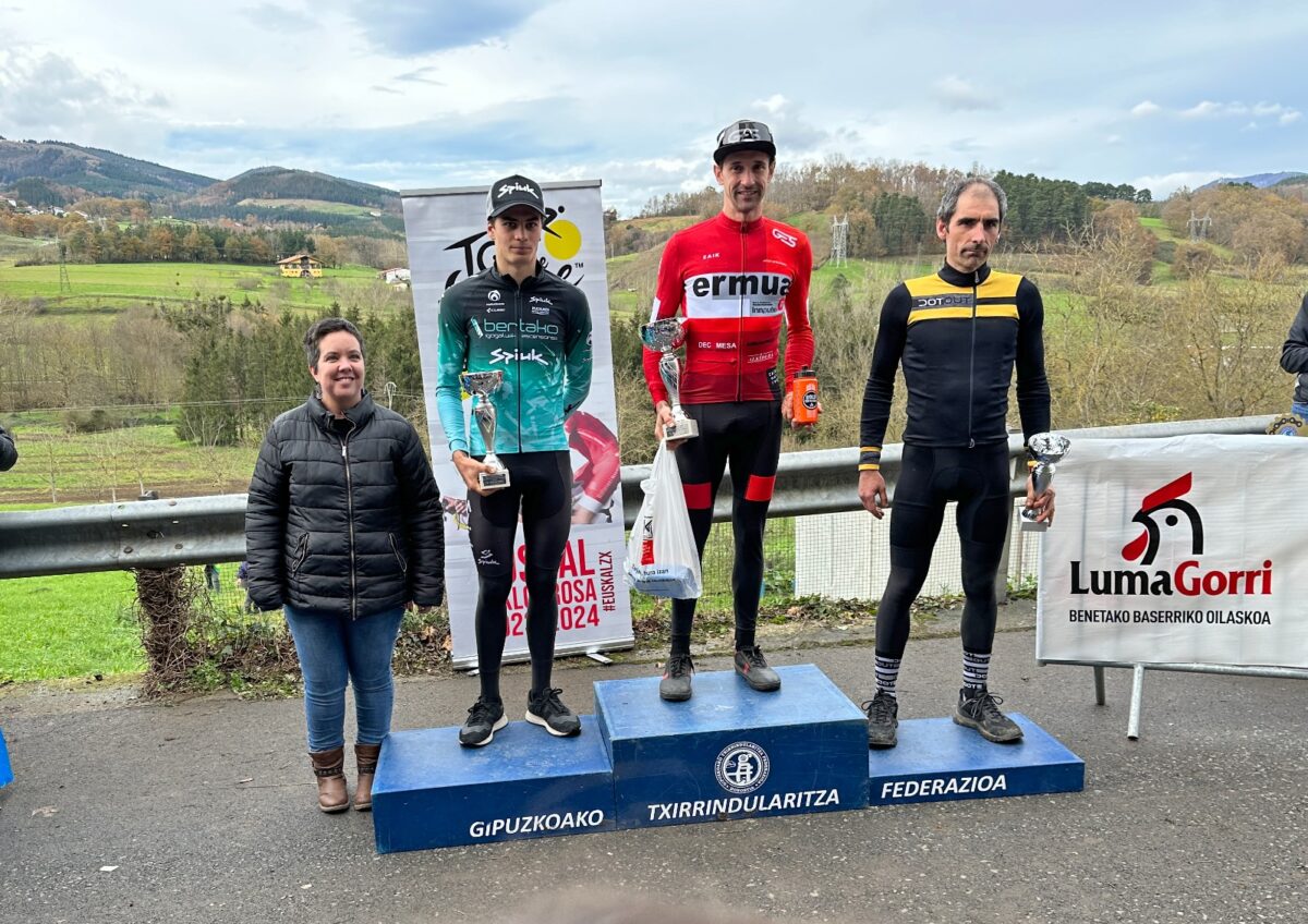 Segurako IV. Ziklo-Kroseko podiuma. Aitor Hernandez ermuarrak izan zen garailea. // Argazkia: Gotzon Aranburu Aurtengo denboraldian Goierrin jokatu den lehen ziklo-kros proba izan da Seguran atzo jokatutakoa. Elite mailan, gizonezkoetan, Aitor Hernandez ermuarra izan zen irabazlea, Gorka Corresen eta Asier Arregiren aurretik. Emakumezkoetan, Olatz Odriozola nagusitu zen, bigarren Irati Aranguren sailkatu zen, eta hirugarren Ainara Elbusto.