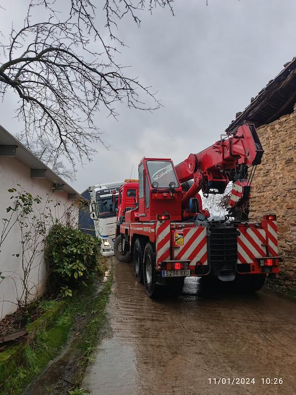 Garabi handi bat kamioia ateratzeko lanetan aritu da goizean zehar. Gurpila baserriko baratzera sartu eta kateatuta geratu da. Kamioia Ciudad Realdik Segurako Guardi poligonora zihoan.